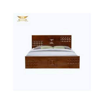 Luxurious Walnut Finished Wooden Bed with High Back & Side Drawers Multiuse Storage Area Best Bed for Couples Bedroom Furniture