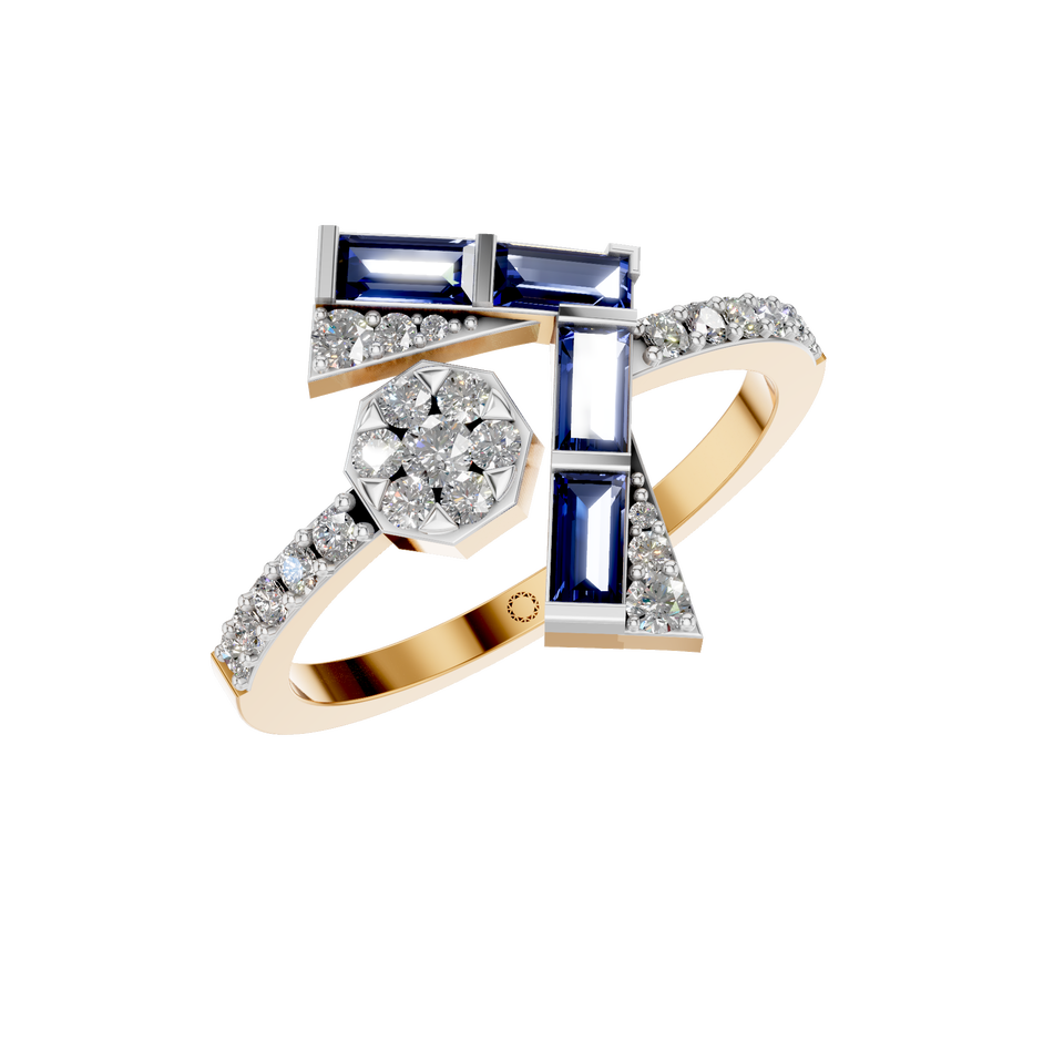 Style:Natural Sapphire Gemstone Ring with Natural Diamonds Accents