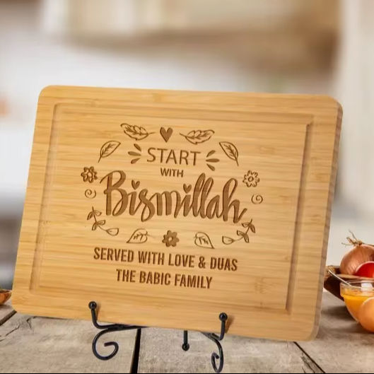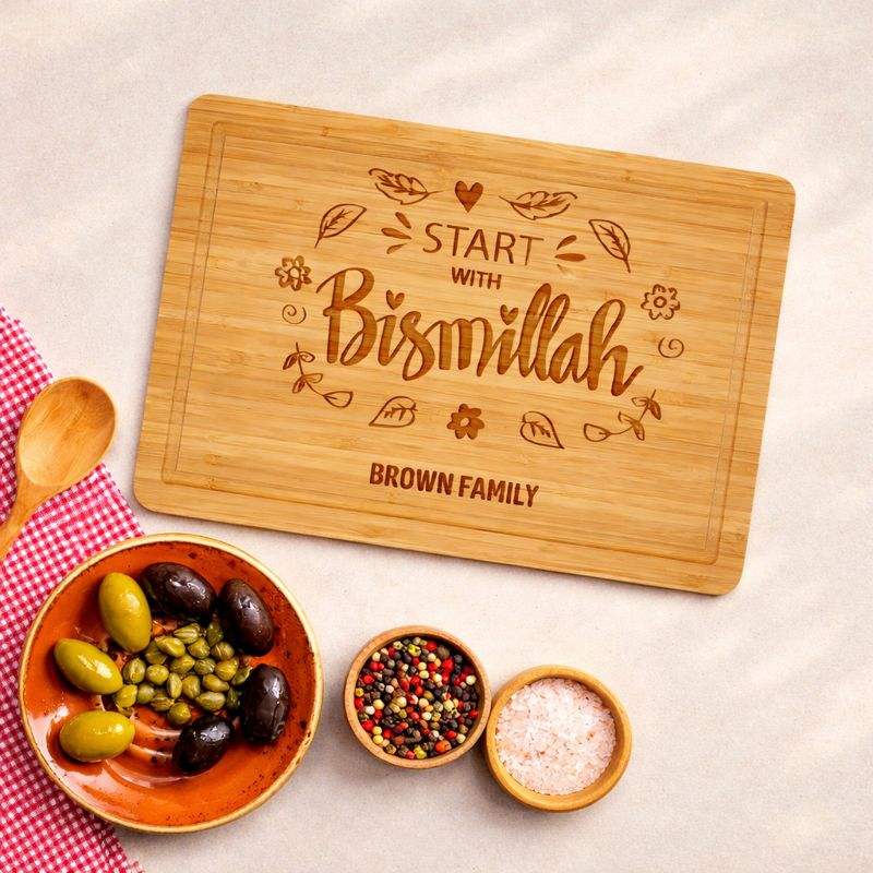 Luxurious Wooden Cutting Board Start With Bismillah Engraved Personalized Family Name Durable Eco Friendly Kitchen Board