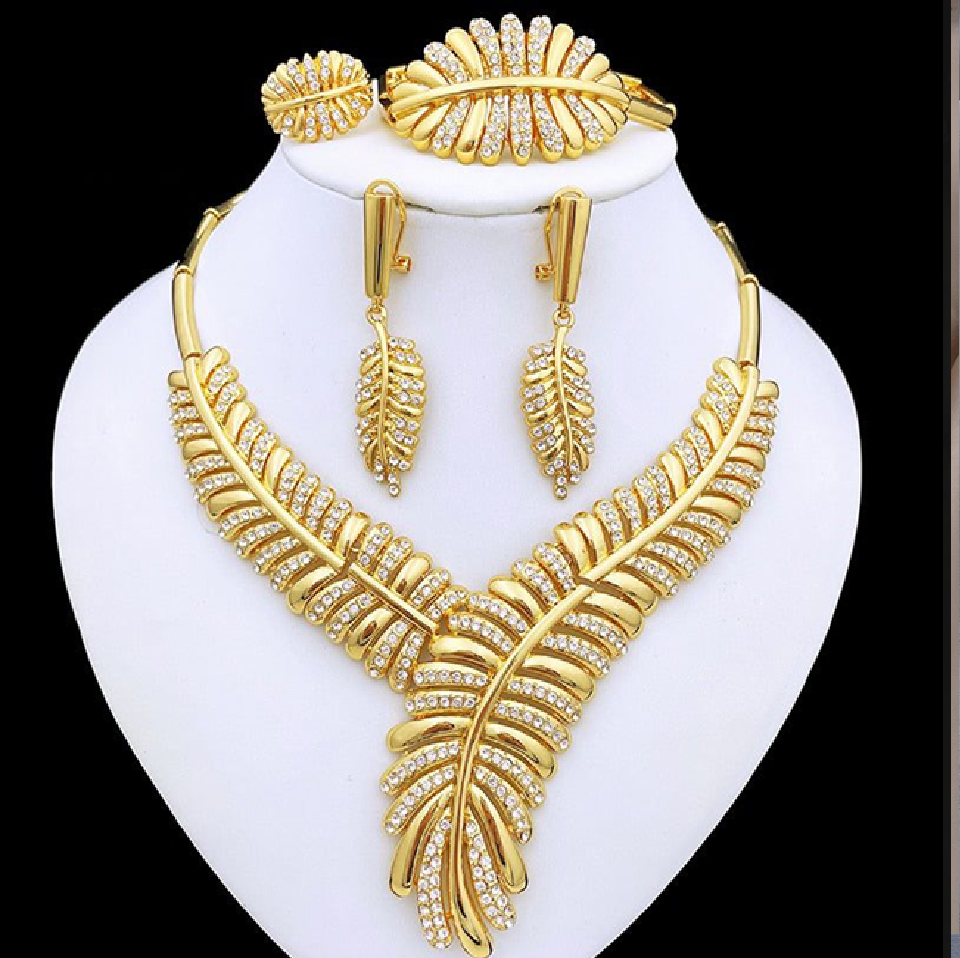 Luxurious gold lattice statement set with a matching ring and bracelet, available at wholesale prices.