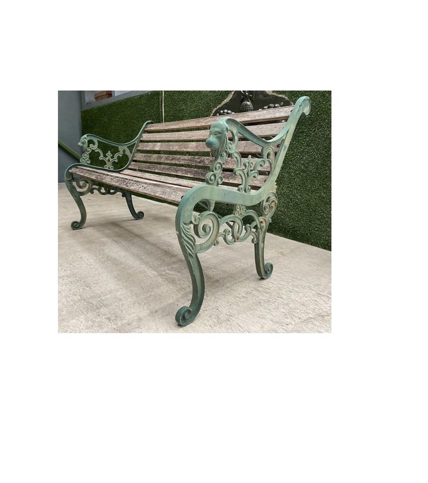 Luxurious heavy frame cast iron bench with carved detailing for spaces that value both antique elegance and modern reliability