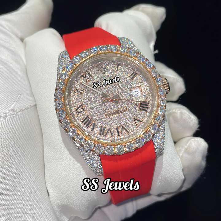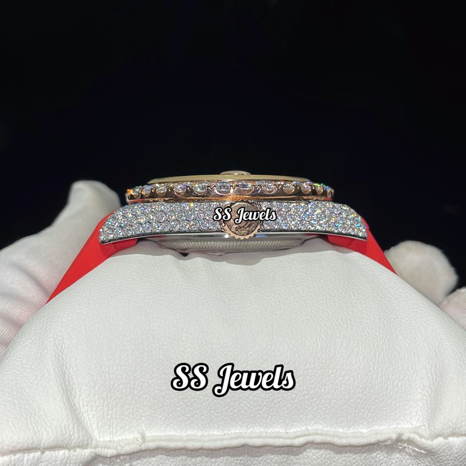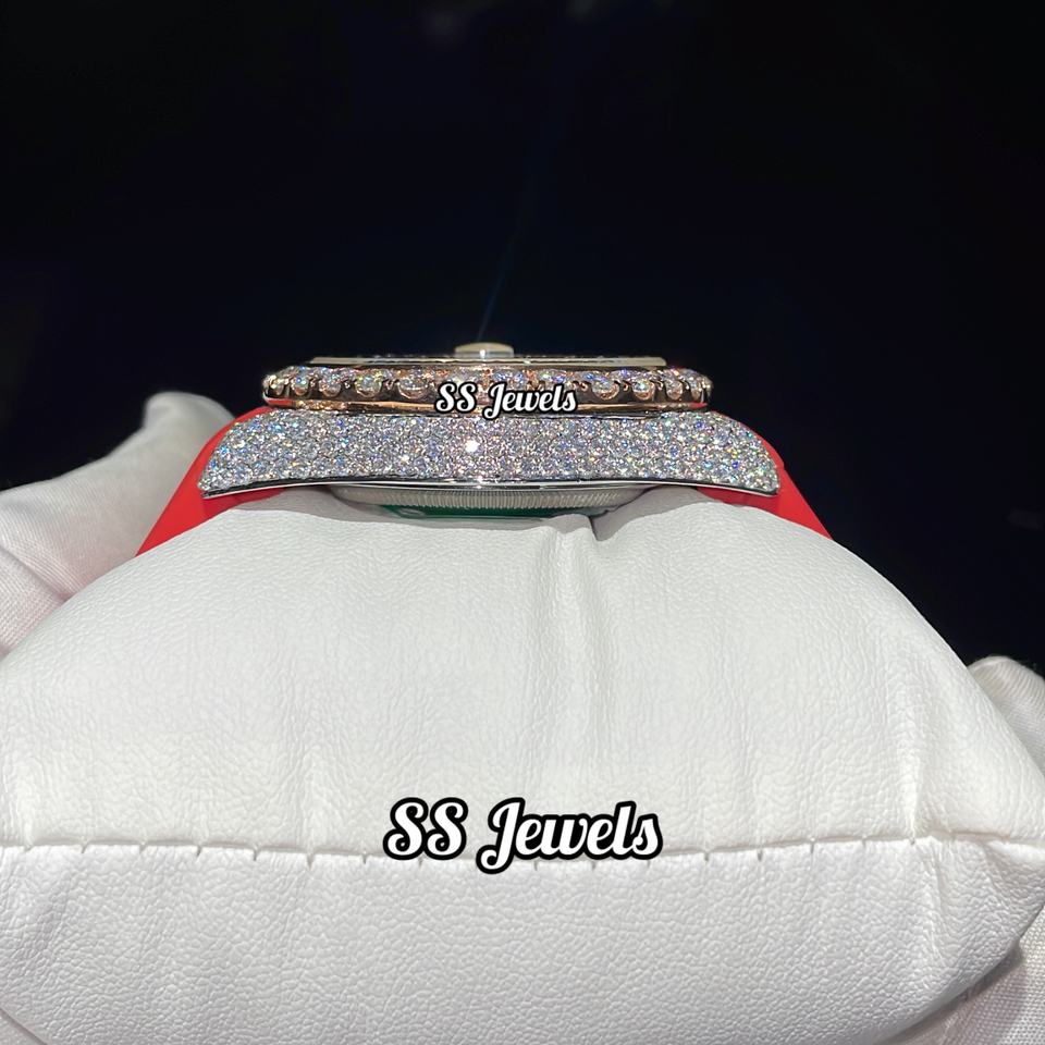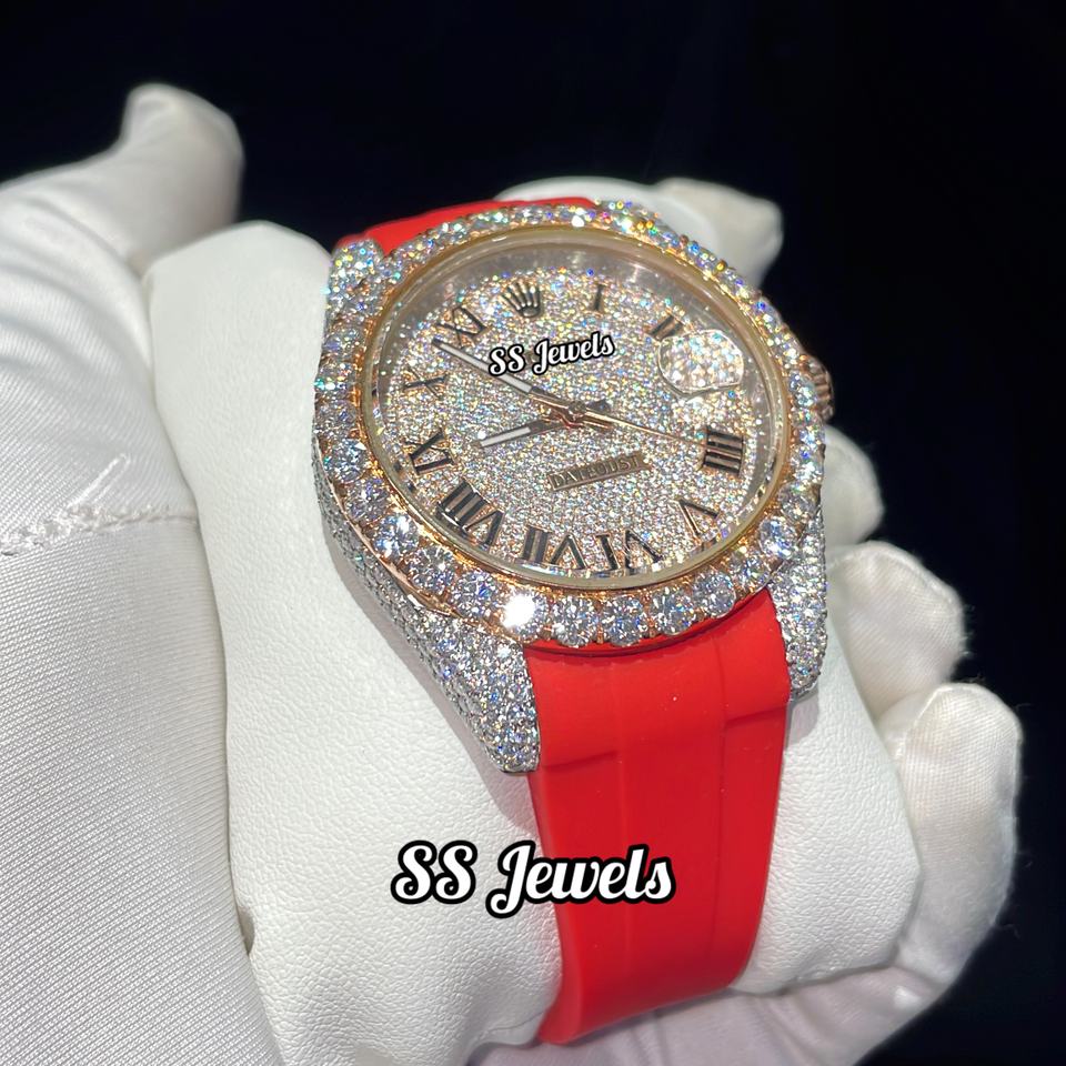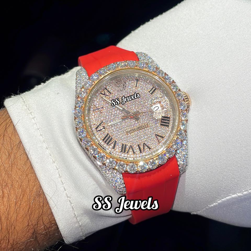 Luxuriously Handcrafted Fashion Hip Hop Mechanical Stainless Steel Case 41mm Dial Moissanite Diamond Silicone Band Watch