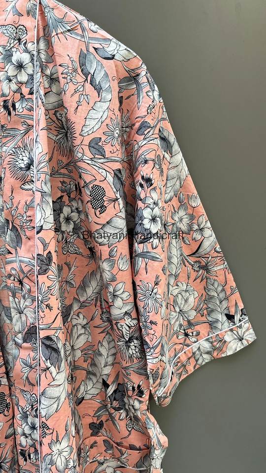 Luxury 100% Cotton Women's Kimono Dress Free Size Indian Bath Robe Natural Waistline Washable Summer Nightwear for Beach Wear