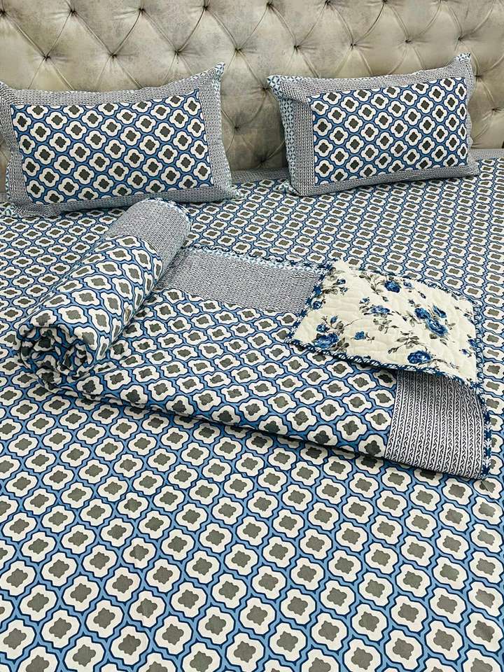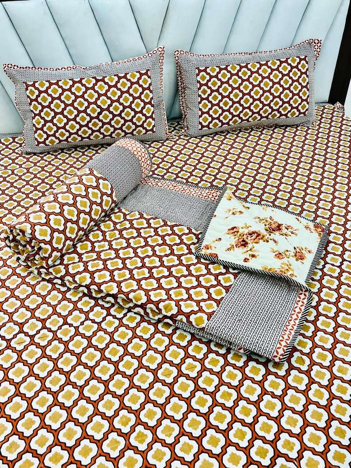 Luxury 100% Cotton King Size Bedsheet Modern Style Latest Arrival Traditional Jaipuri Hand Block Printed Bedding quilt duvet set