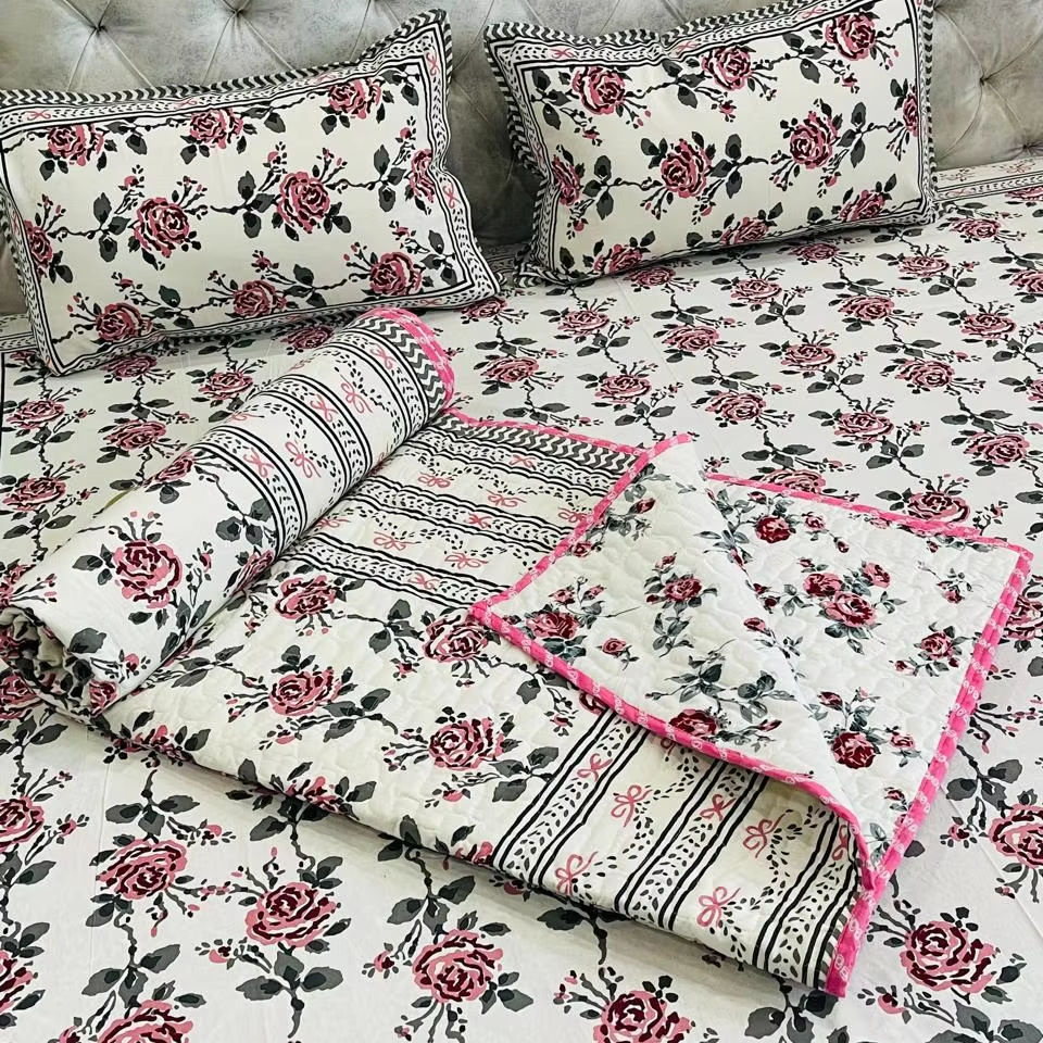 Luxury Modern Style 100% Cotton King Size Bedding Set Traditional Jaipuri Hand Block Printed Woven Technique for Home or Hotel