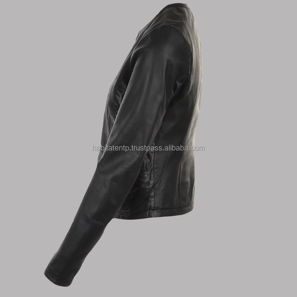 Luxury 100% Genuine Leather Women Jackets Slim Fit Collarless Black