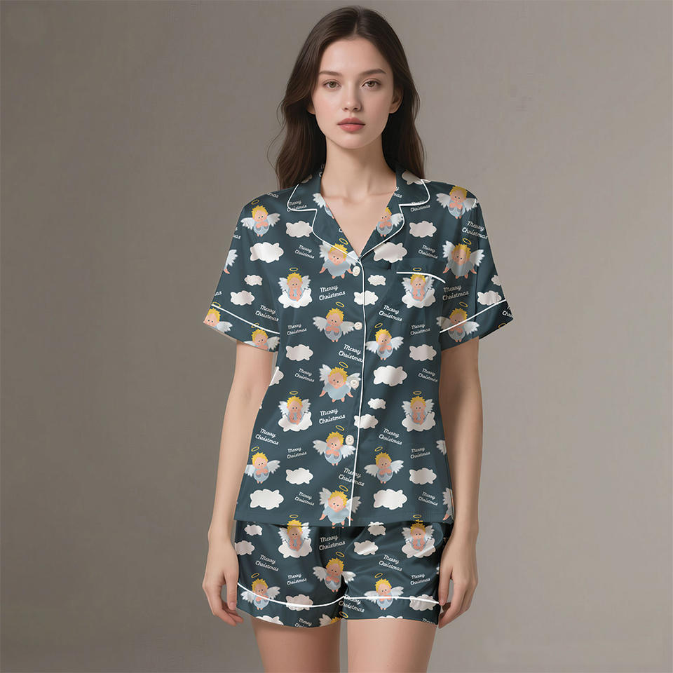 Luxury 100% Silk Satin 2-Piece Pajamas Set Breathable Soft Sleepwear Heat Transfer Print 120150 GSM Customizable Spring
