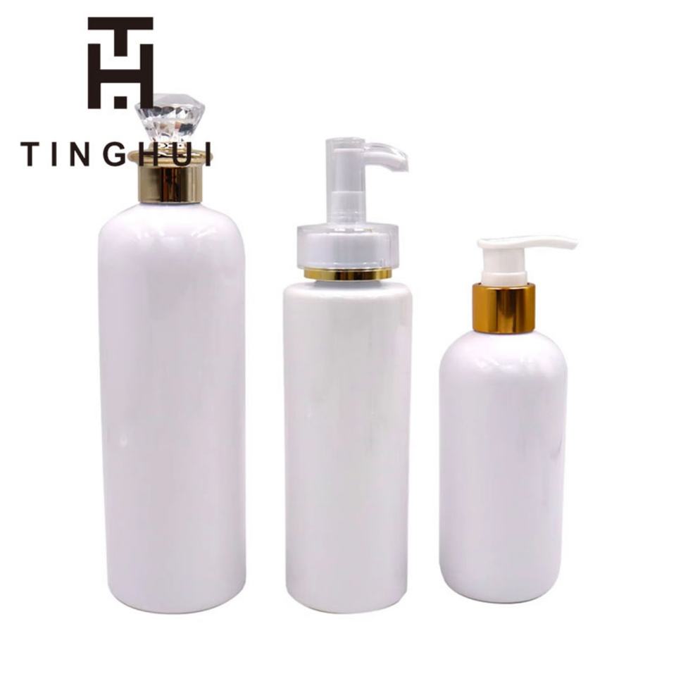 Luxury 100ml 250ml 300ml 500ml PET Plastic Bottle Skin Care White Round Shower Shampoo Empty Body Lotion Bottle With Pump