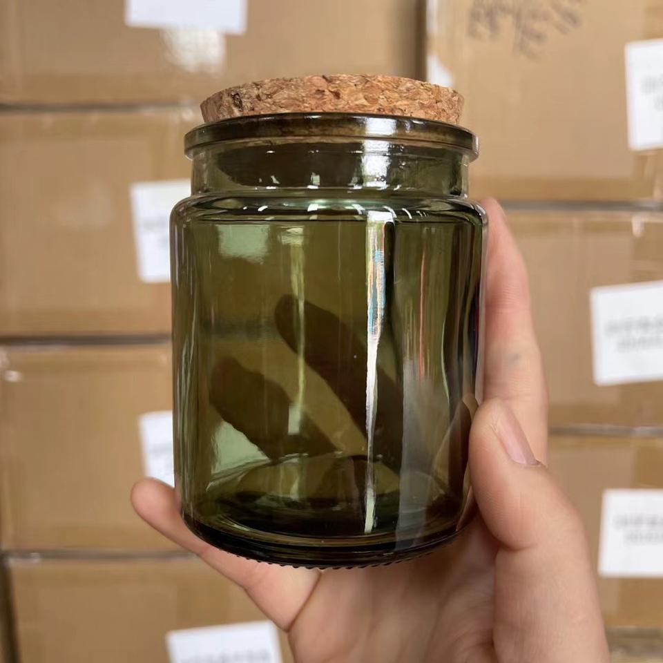 Luxury 100ml Glass Candle Jar with Cork Lid Empty Green Amber Clear Small Model GS-C003 Silk Screen Printed for Candles