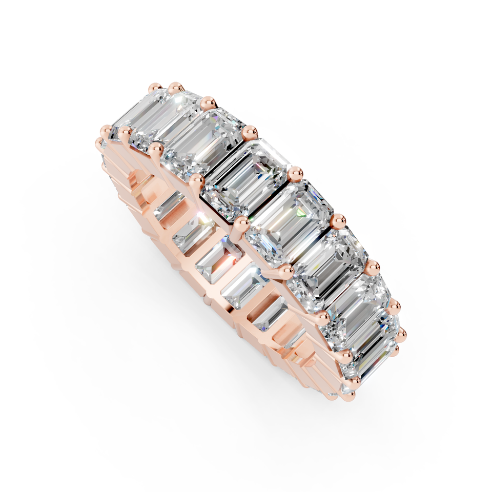 Luxury 10K Rose Gold Eternity Band with Emerald Cut Lab Grown Diamonds Trendy Classic Wedding Ring