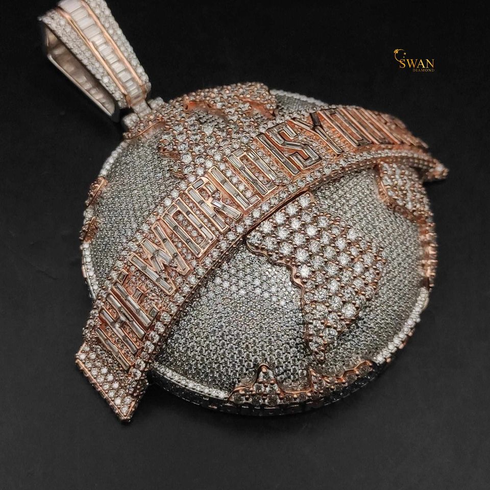 Luxury 10K Solid Gold the World Is Yours Globe Pendant with VVS Moissanite Diamonds Iced Out Hip Hop GRA Certified Men Women