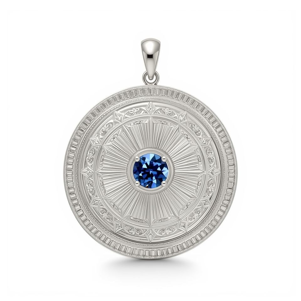 Luxury 10K White Gold Blue Sapphire Pendant for Women Fine Jewelry Modern Medallion Design Recycled Sustainable OEM Thailand