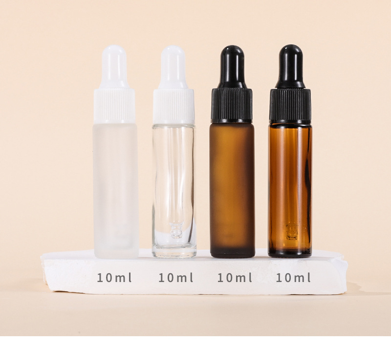 Luxury 10ml Clear Amber Frosted Brown Glass Serum Dropper Bottle