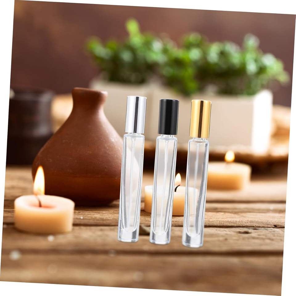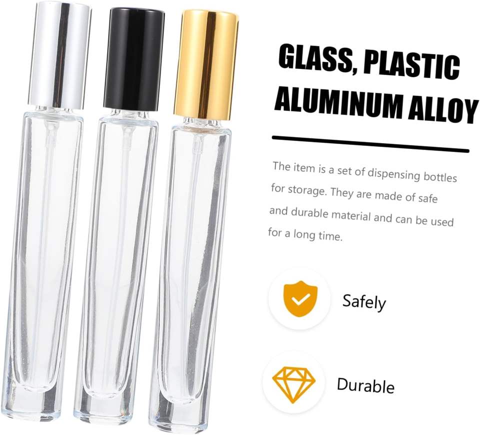 Luxury 10ml Transparent Perfume Spray Bottle Flat Shape Thick Bottom Portable Pocket Atomizer with Metallic Gold Cap