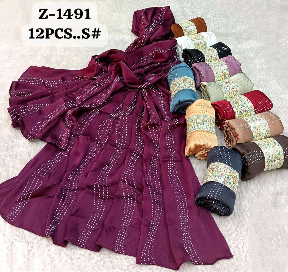 Luxury 12-Piece Scarf Set: Textured Jacquard Chiffon Hijabs with Shimmering Rhinestone Borders & Elegant Wave Patterns