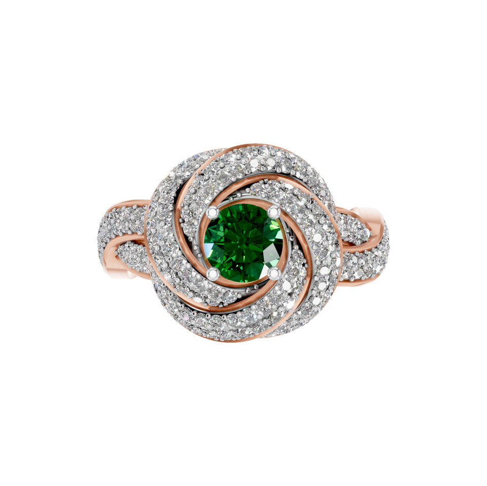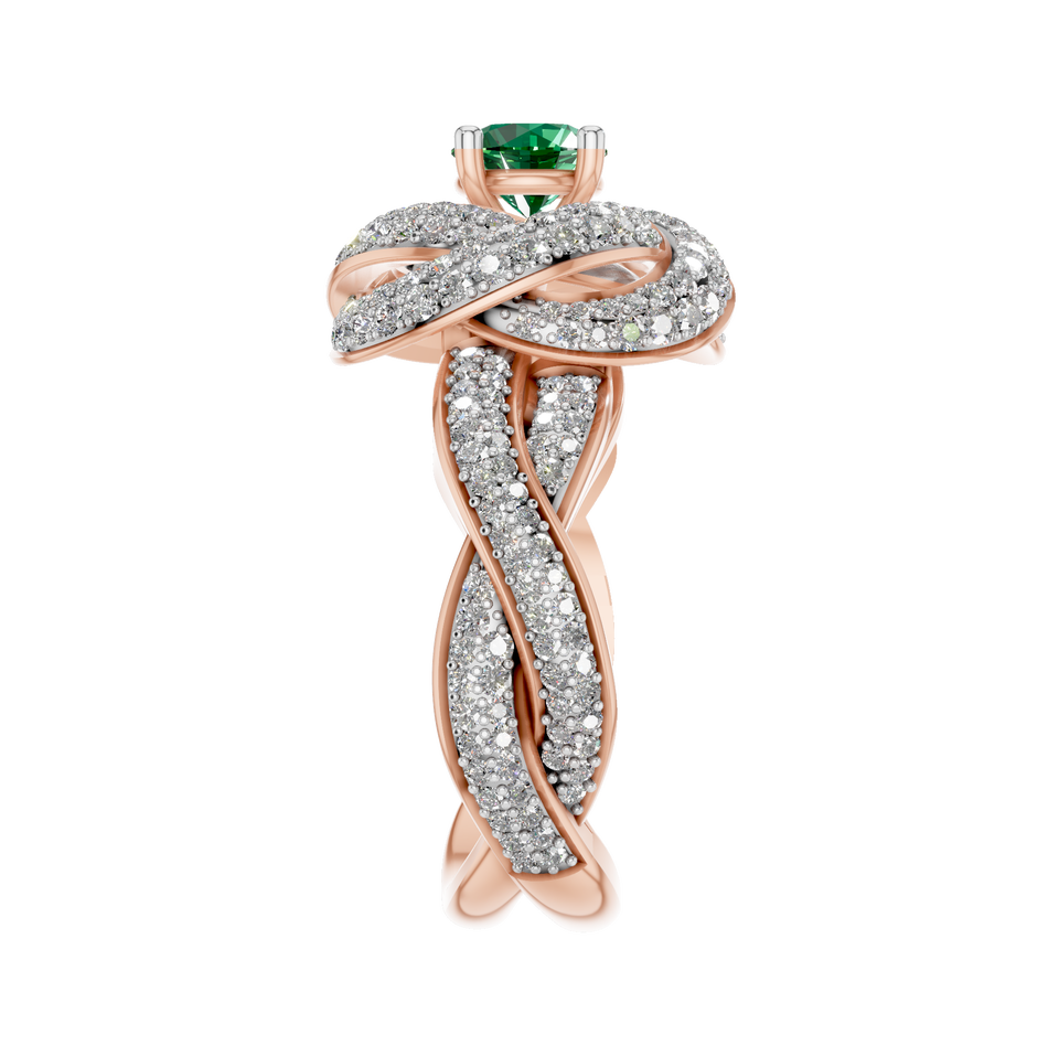 Style:Twisted Rope Design Ring with Natural Emerald and Diamonds