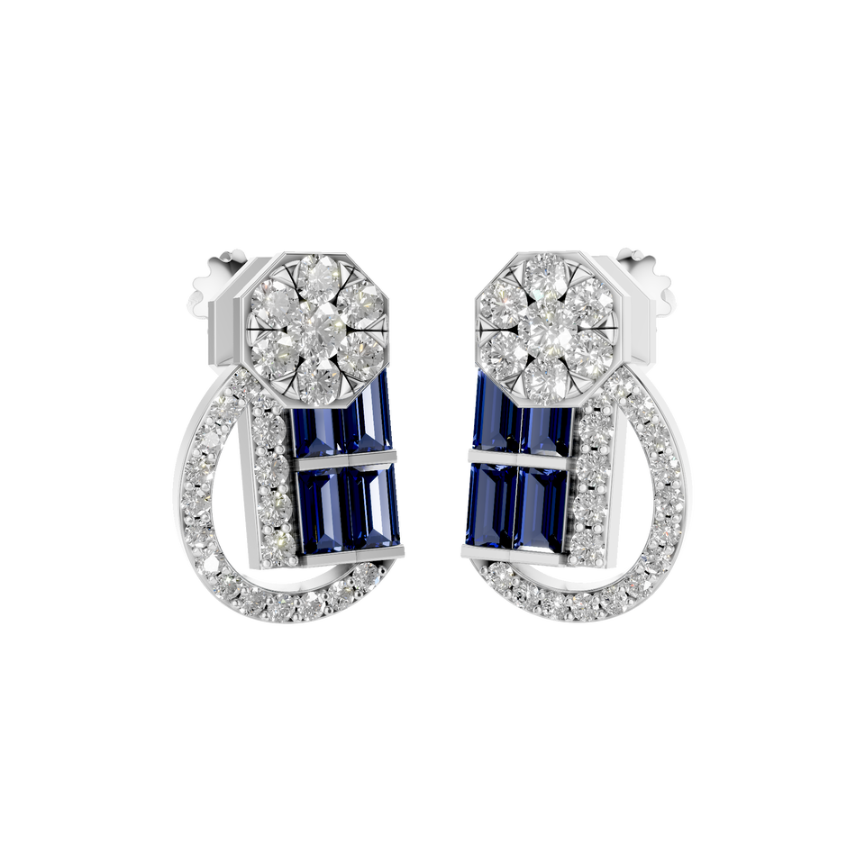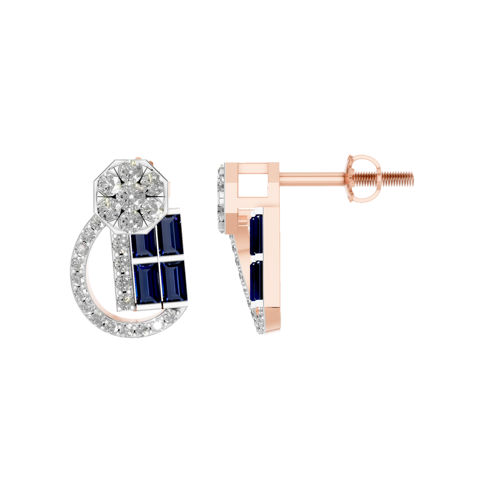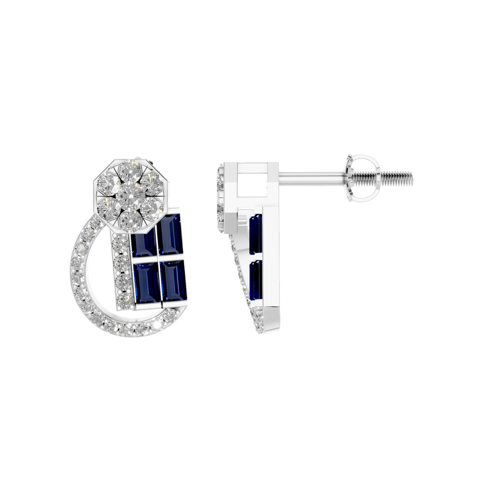 Modern Baguette Sapphire and Diamond Cluster Earring