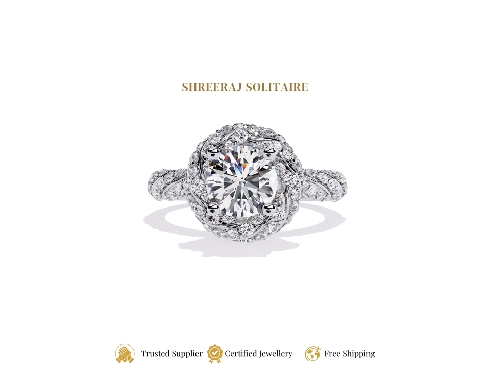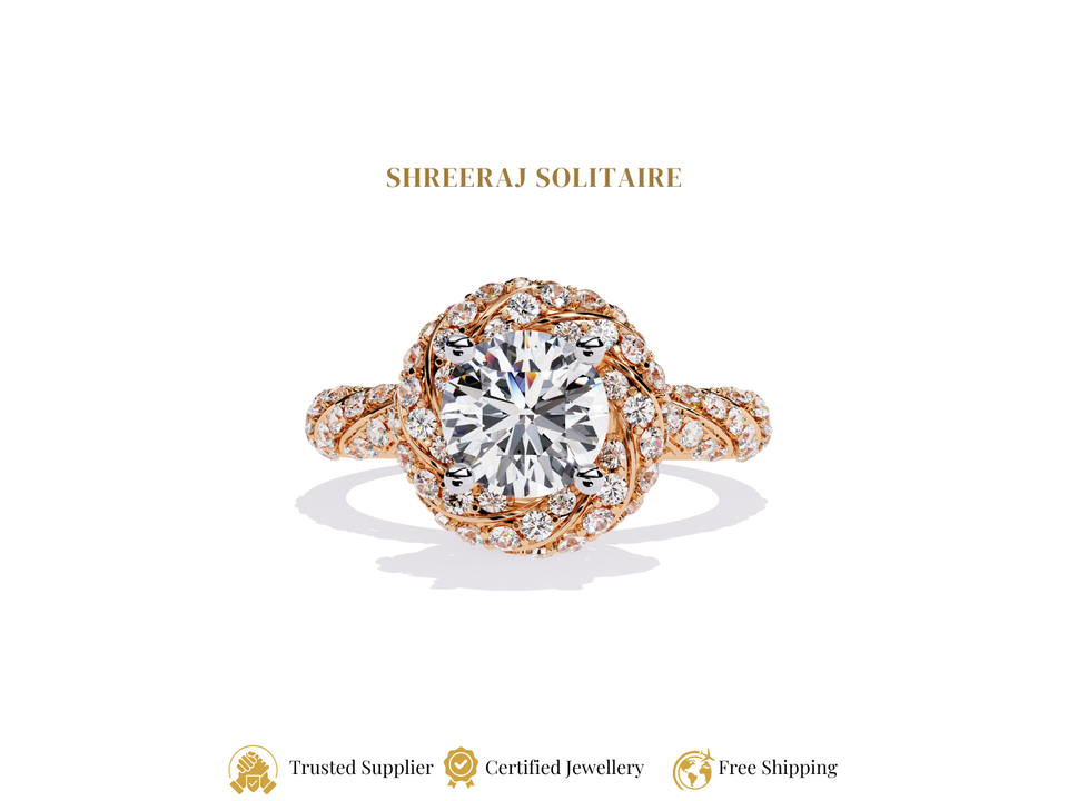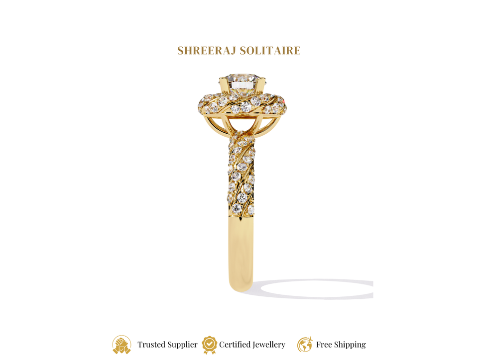 Luxury 14K Gold Lab Grown Diamond Ring Halo Design Solitaire Fine Jewelry Elegant Bridal Engagement Ring for Women