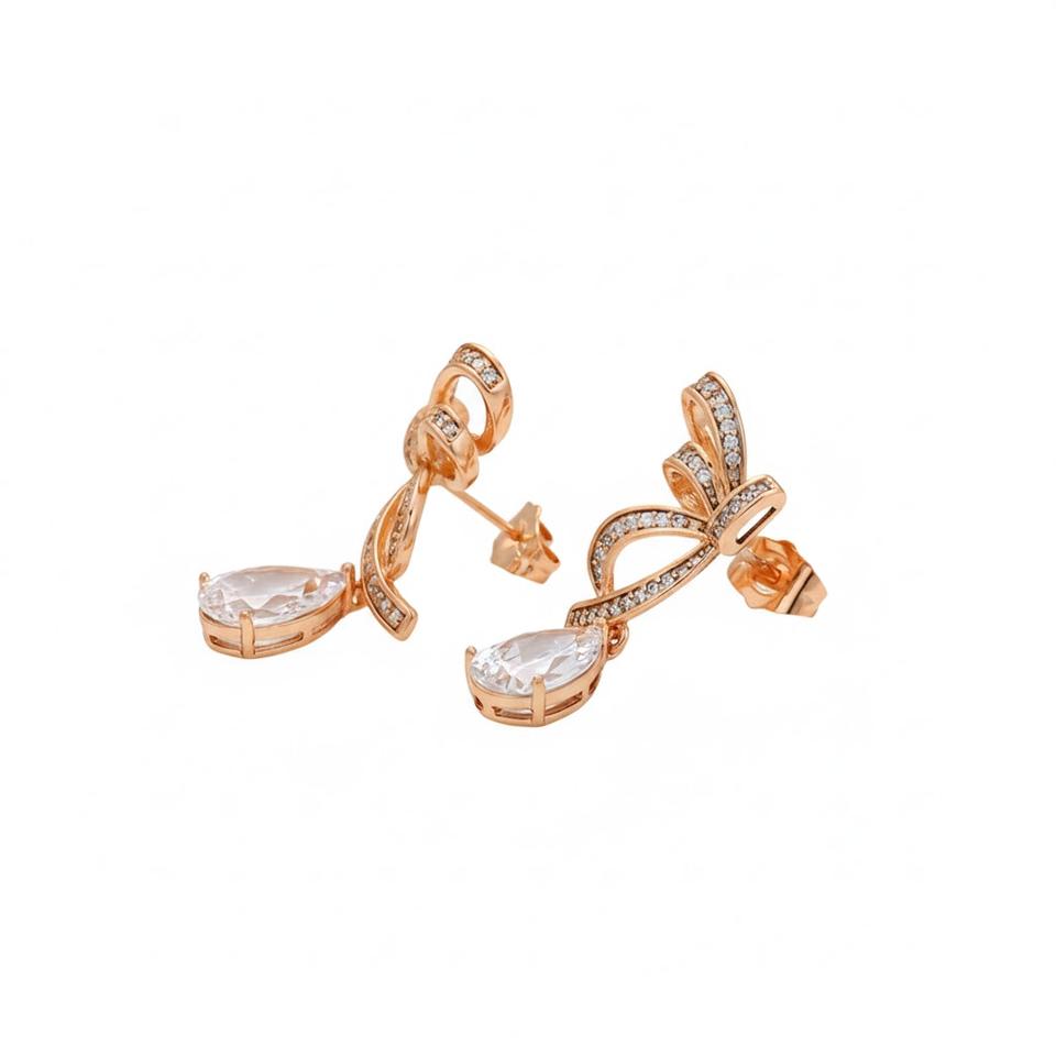 Product Name:14K Solid Gold Pear Cut Bow Design Drop Earrings
