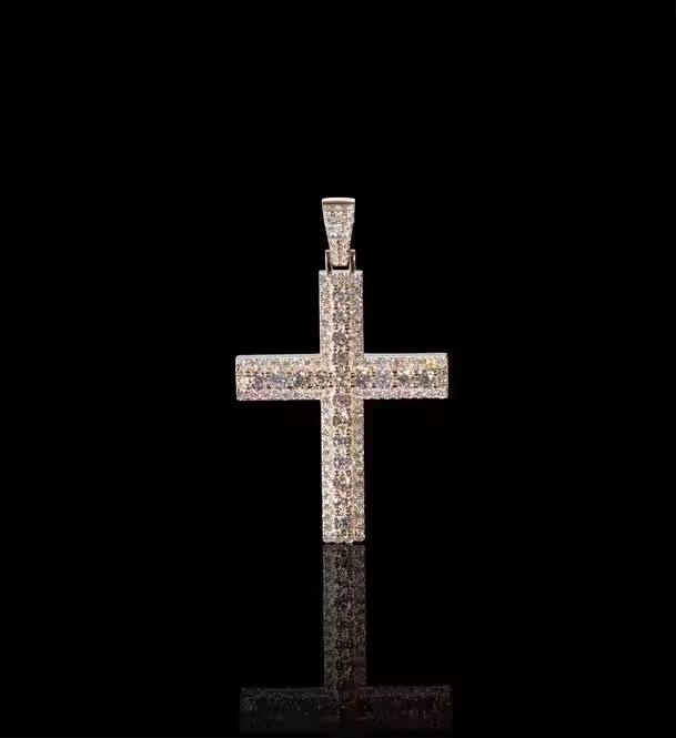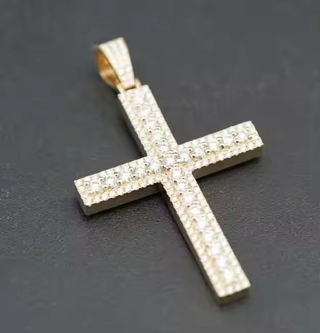Luxury 14K Yellow Gold 3D Cross Pendant Stylish Hip Hop Design Princess Cut Simulated 925 Sterling Silver Fine Pendants Charms