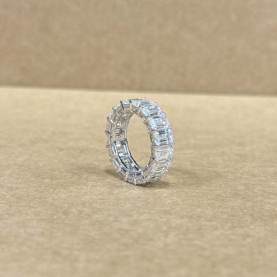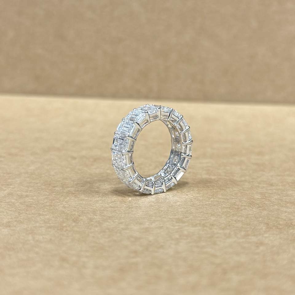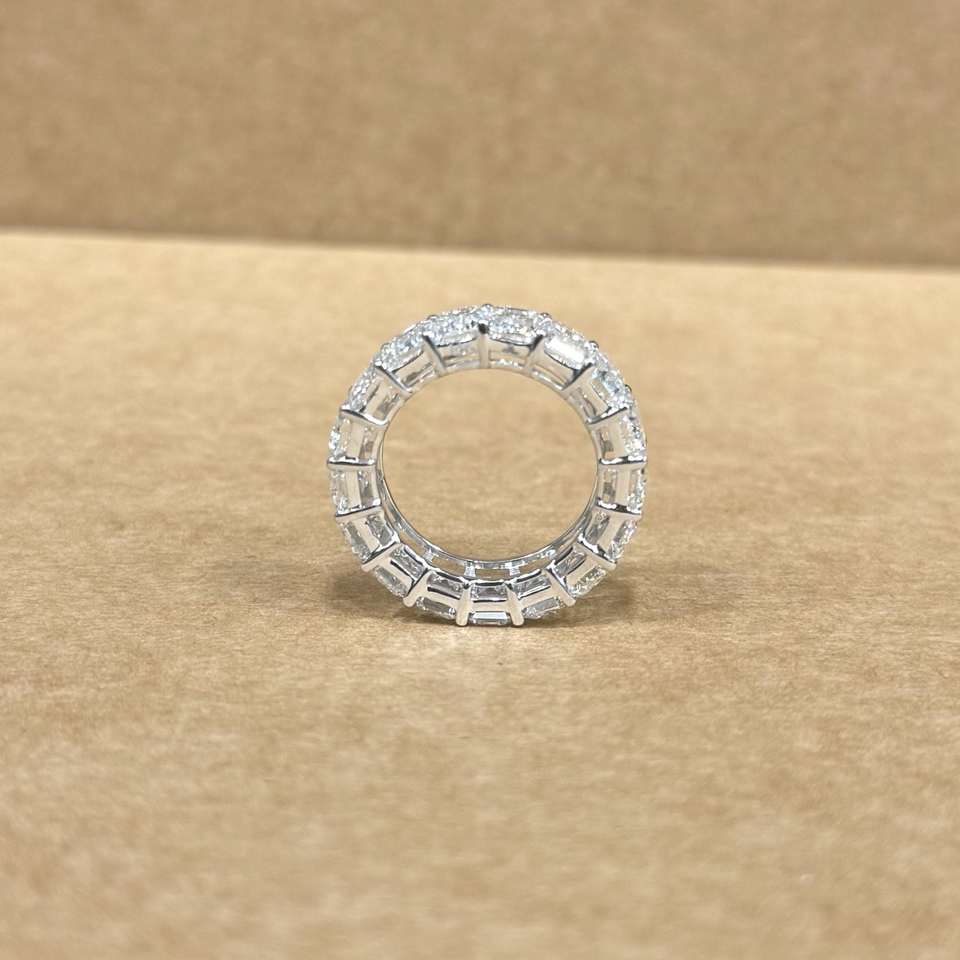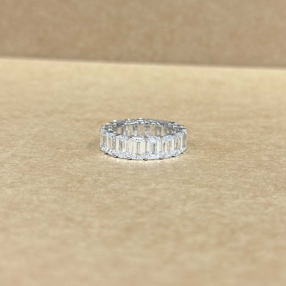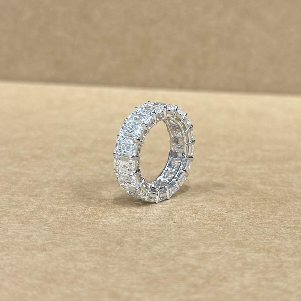 Luxury 14k White Gold LGD Emerald Shape Diamond Band 12.21 CT Total Weight Designer Eternity Ring Wedding Anniversary Jewelry