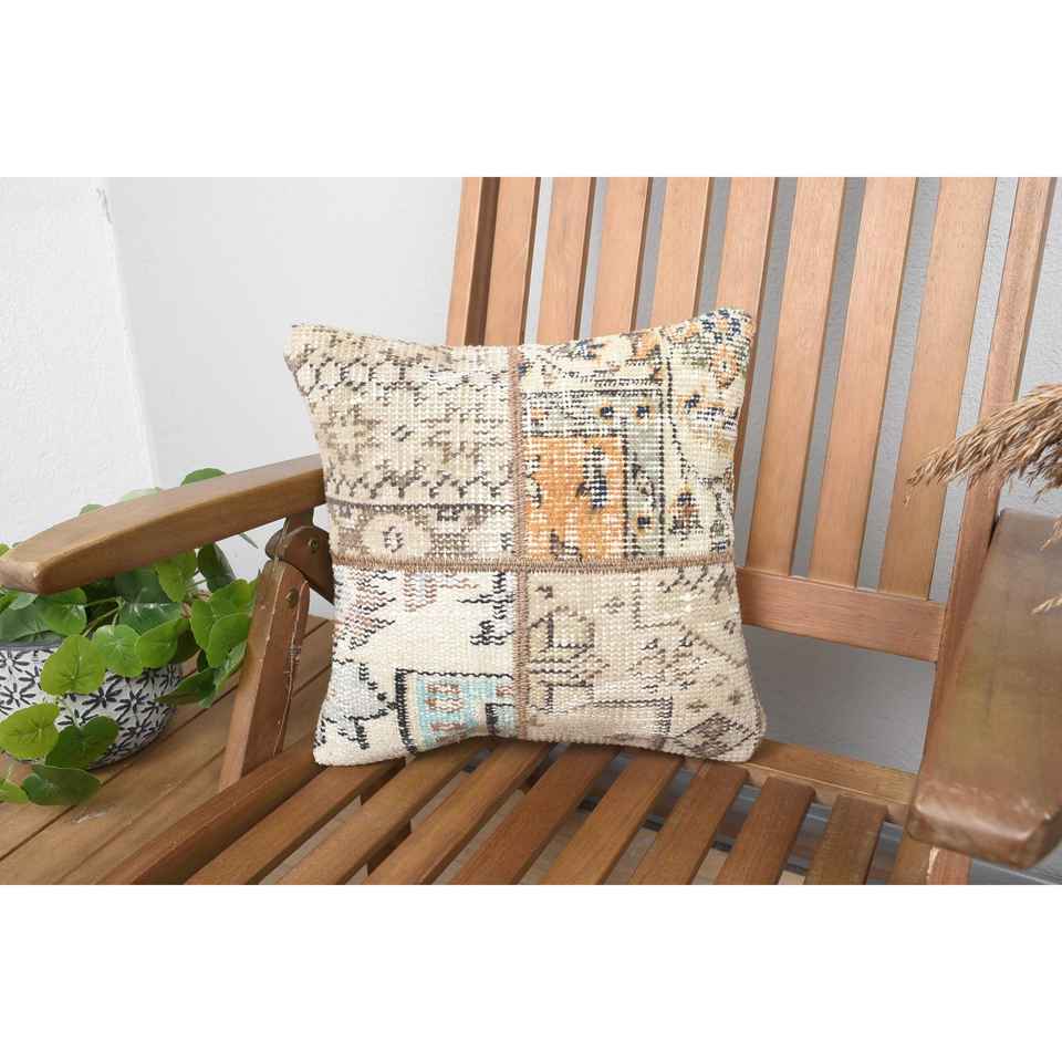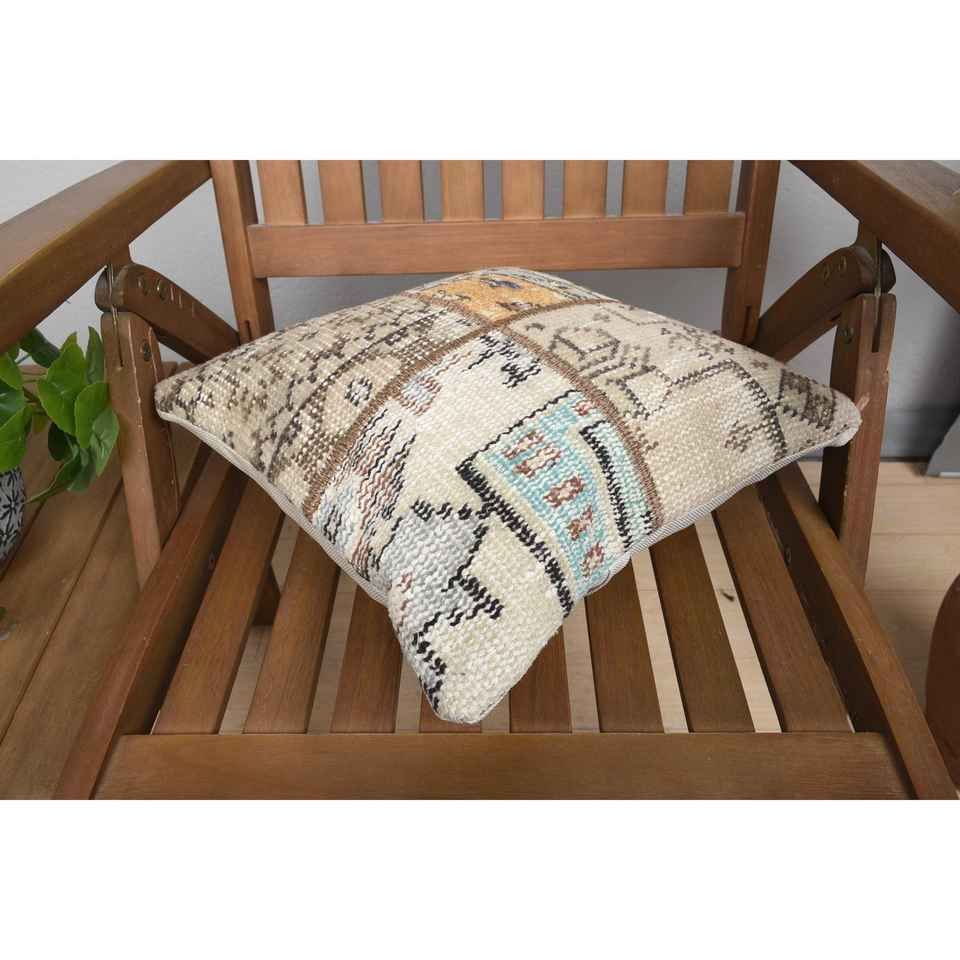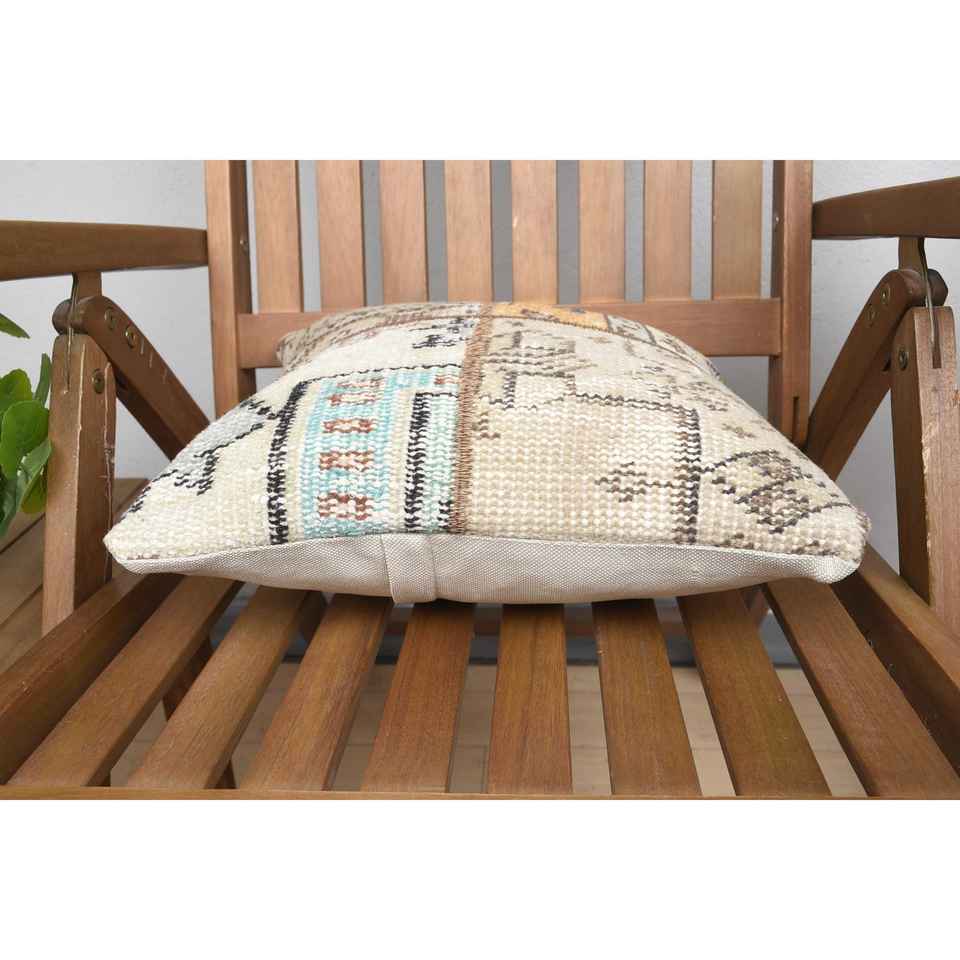 Luxury 14x14 Beige Kilim Wool Eco-Friendly Non-Slip Bolster Pillow Woven Vintage Fluffy Patterns Removable Washable Portable for