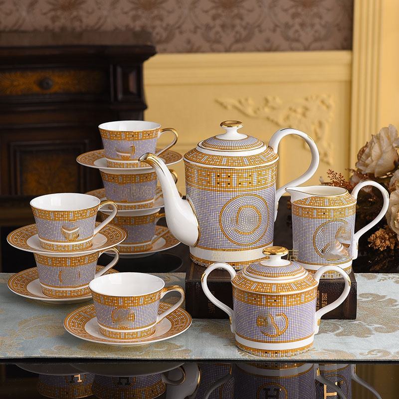 Luxury 15-Piece Nordic Ceramic Porcelain Coffee & Tea Sets for 6 People Drinkware