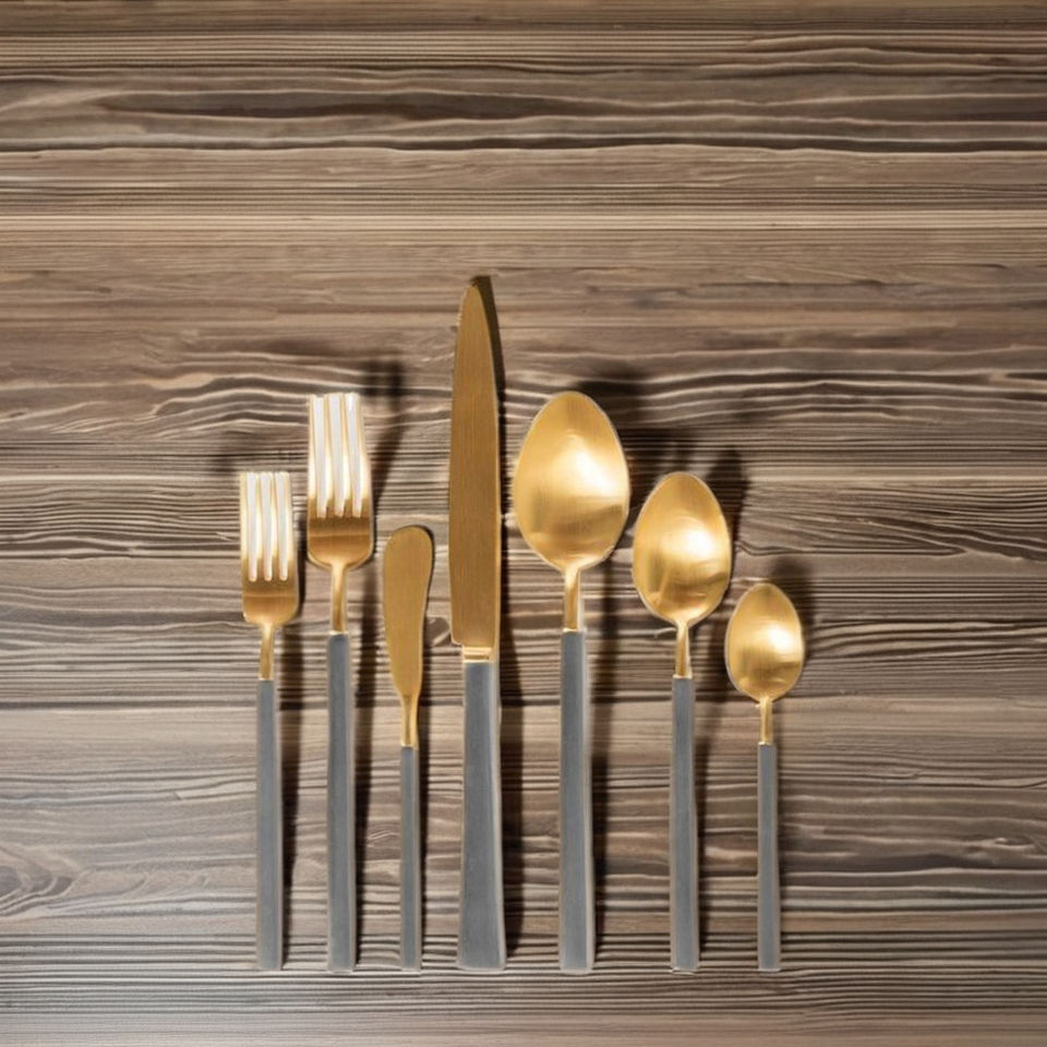 Luxury 18/10 Stainless Steel Gold Flatware Set of 7 with Brushed Matte Finishing Handle Knife Fork Spoon Silverware for Dinning