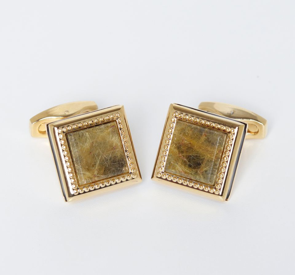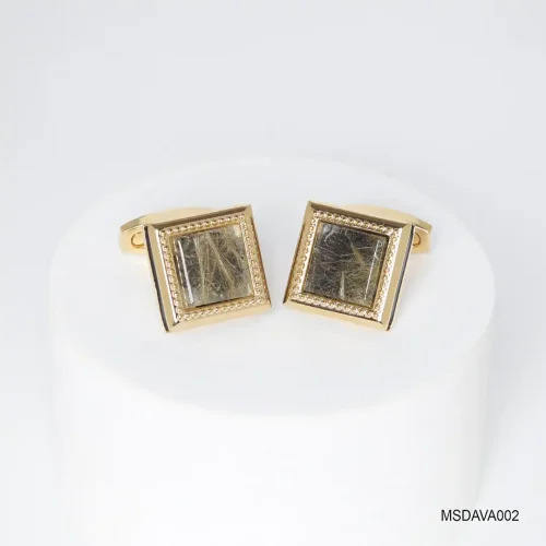Luxury 18K Gold-Plated Cufflinks for men with Fengshui Golden Rutilated Quartz MSDAVA002 | Tinh Vu Collection | Made in Vietnam