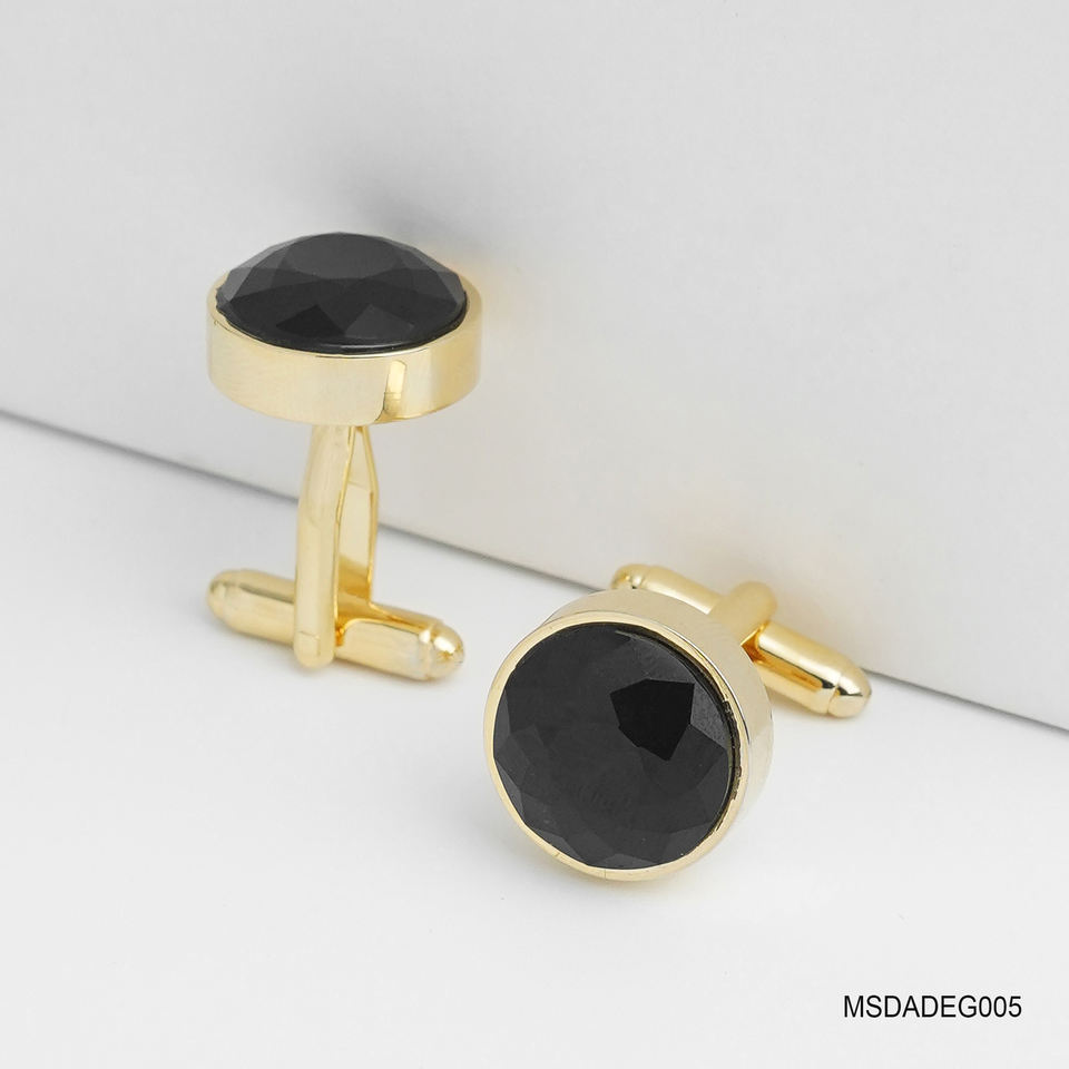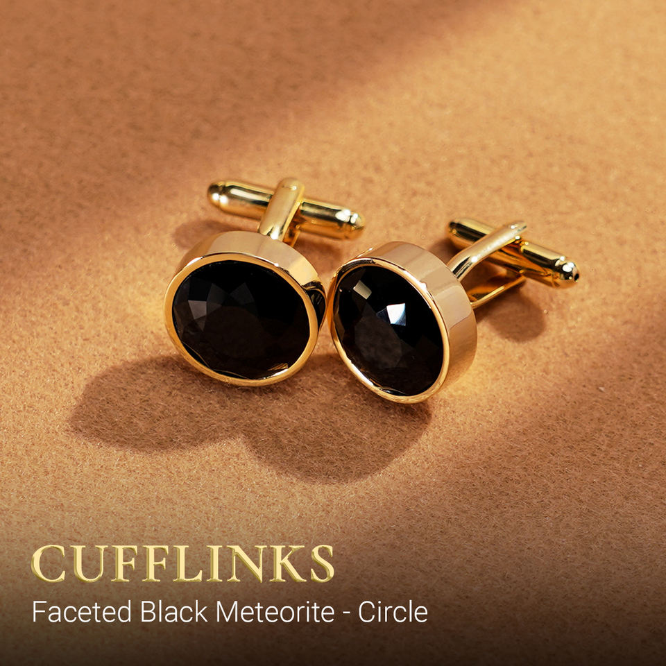 Luxury 18K Gold-Plated Men's Cufflinks with Black Meteorite, Tinh Vu Collection, MSDADEG005, Vietnam