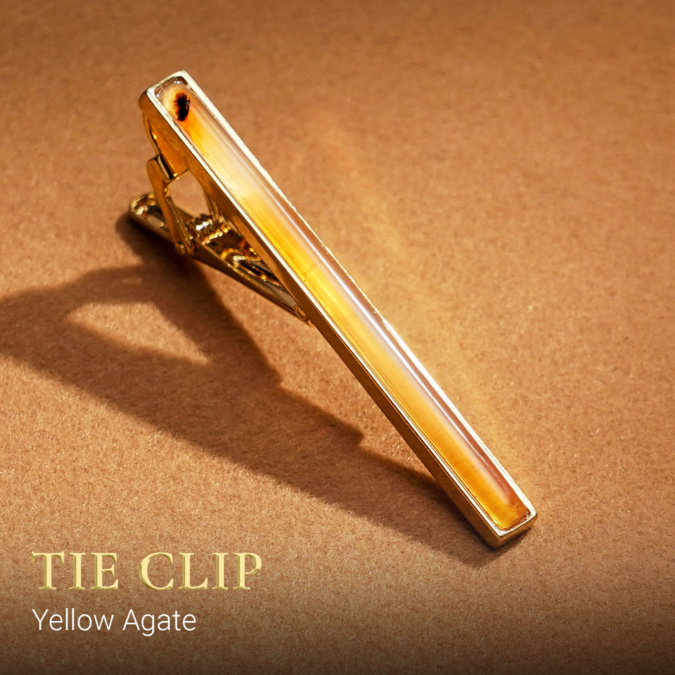 Luxury 18K Gold-Plated Tie Clip for men with Fengshui Gemstone Yellow Agate KCVDAVA002 | Tinh Vu Collection | Made in Vietnam