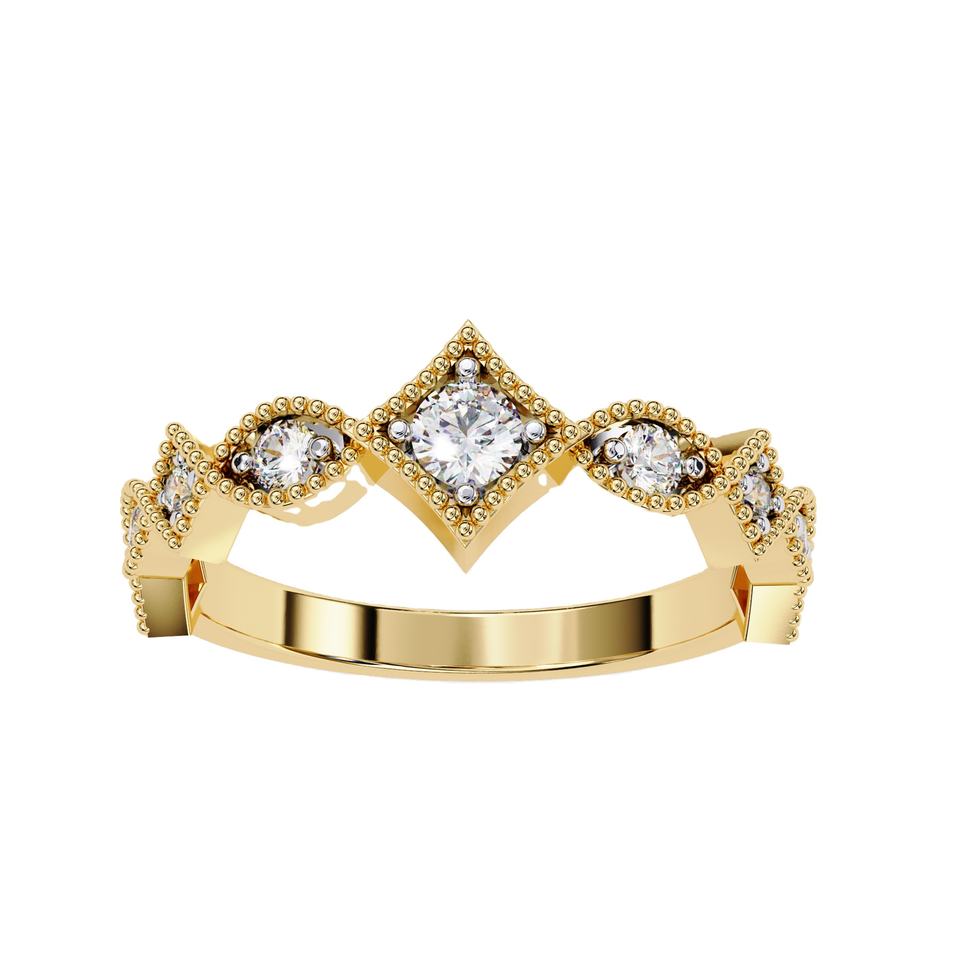 Luxury 18K Gold Tiara Style Wedding Band Natural Diamond Engagement Ring Milgrain Edges Royal Crown Ring Women