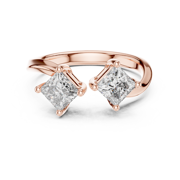 Luxury 18K Rose Gold Alloy Open Bypass Ring with Princess Cut Moissanite | Modern Fine Jewelry Statement Ring for Party