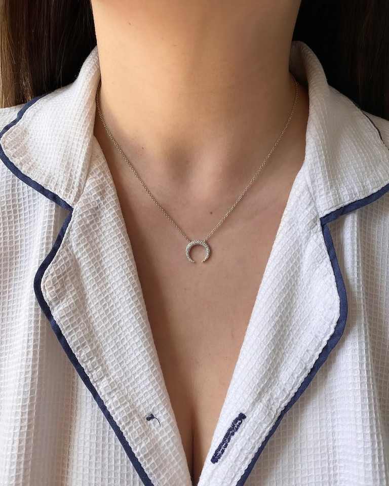 Luxury 18k Solid Gold White Gold Crescent Moon Pendant Necklace Natural Diamond Silver Color Women Fashion Factory Wholesale