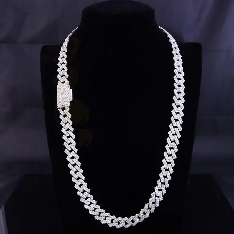 Luxury 18mm Moissanite Diamond Cuban Link Chain Fashionable Silver Necklace for Men