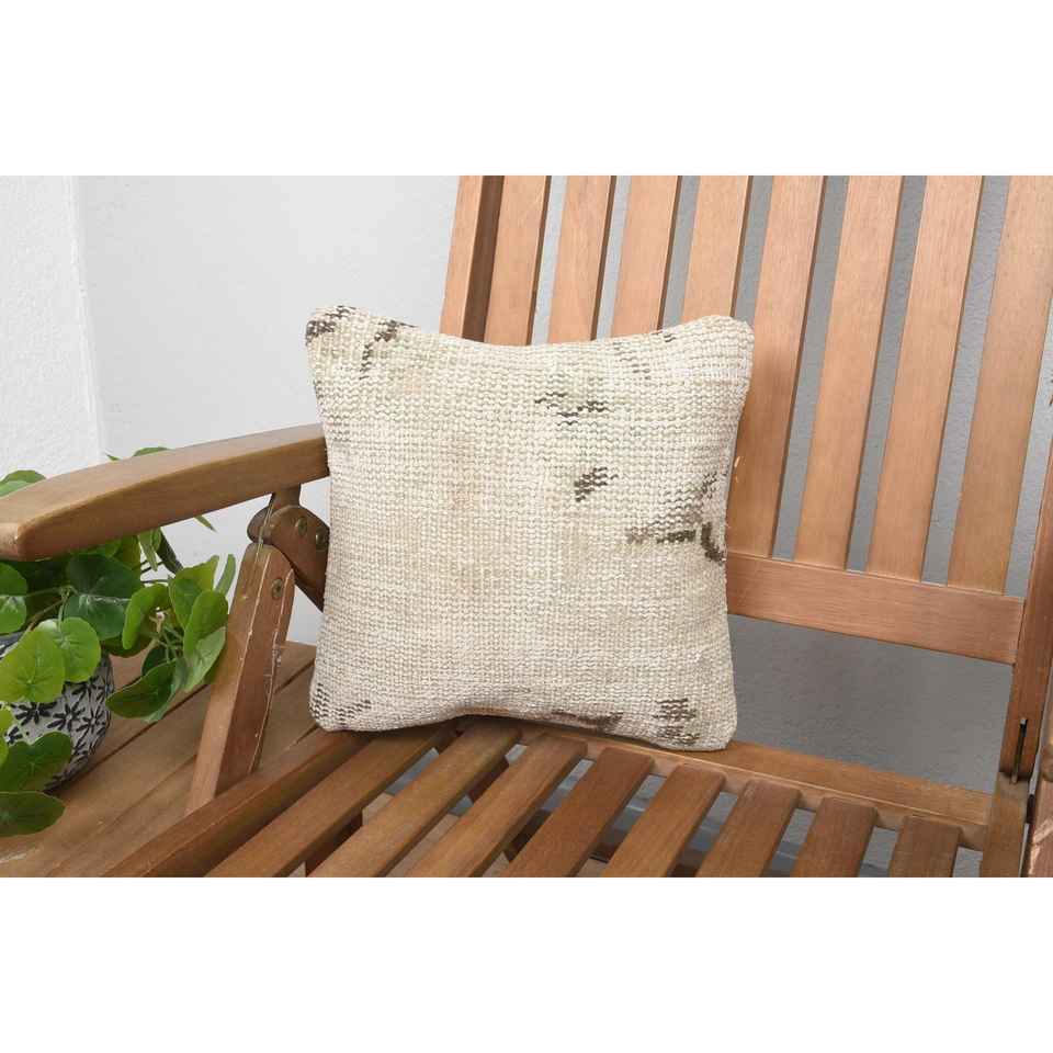 Luxury 18x18 Beige Kilim Patchwork Wool Pillow 12x12 Inch Rustic Floral Print Throw Pillow for Bedding Floor Portable Woven