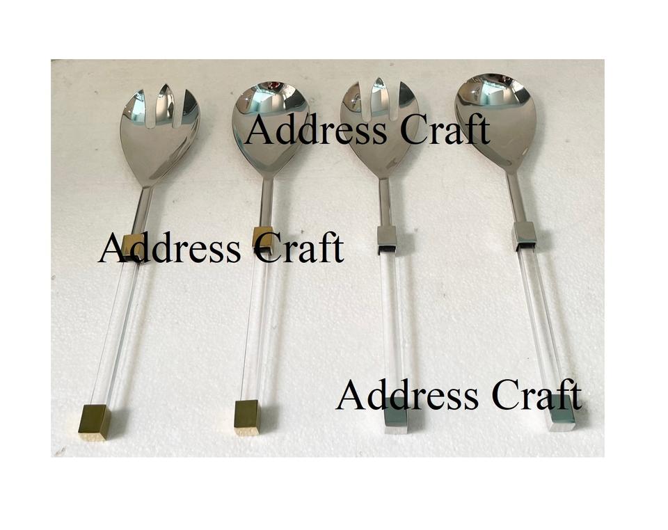 Luxury 2-Pcs Set Stainless Steel 18/8 Salad Server With Acrylic Handle Customized Salad Tools Eco Material Metal Serving Utensil