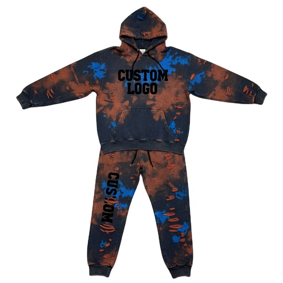 Luxury 2-Piece Acid Wash Tie-Dye Tracksuit with Sublimation Printed Quick Dry Matching Set Custom Logo Streetwear for Winter