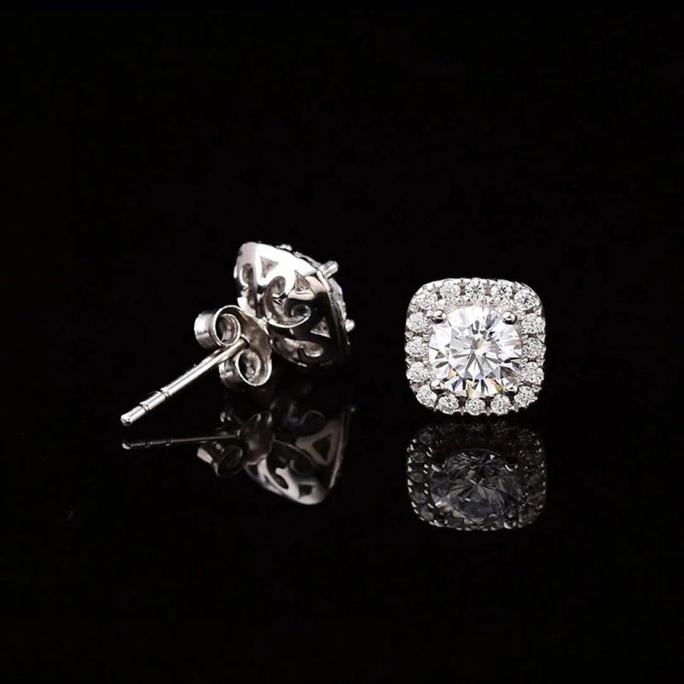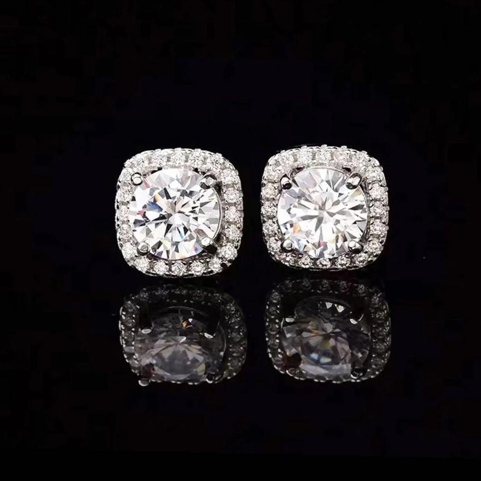 Luxury 2023 925 Silver Stud Earrings 14K 18K square Shape Hip Hop Stud Vvs Moissanite Diamond Earrings for Women Men