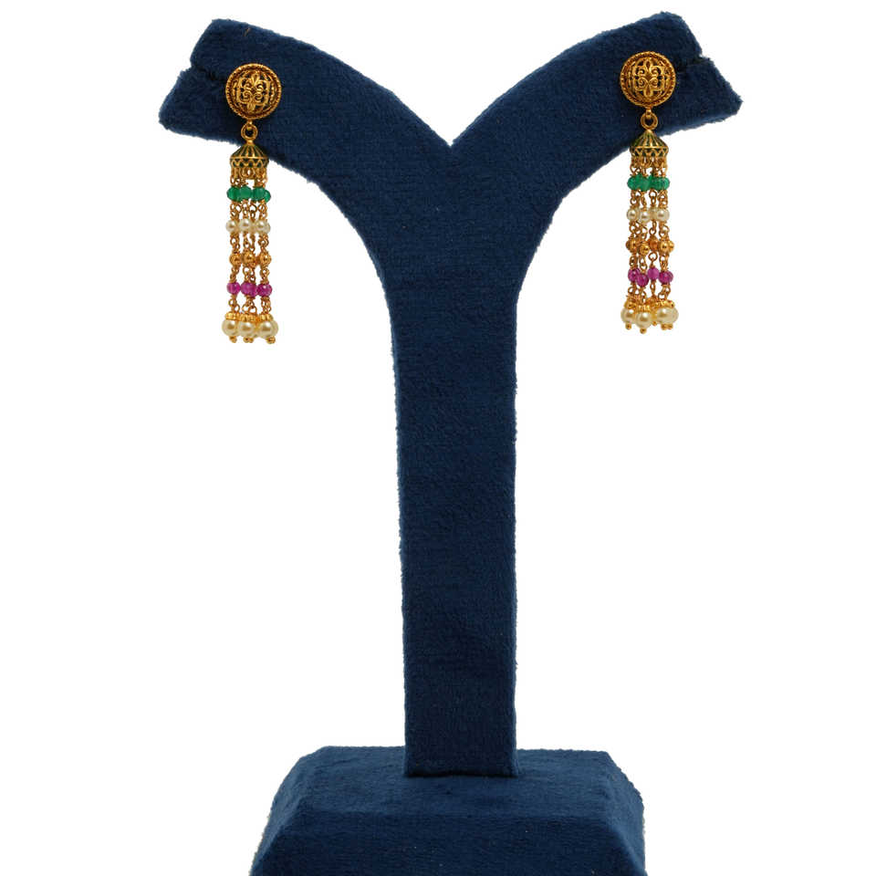 Luxury 22K Gold Drop Earrings for Women Multi-Color Beaded Indian Ethnic Design, Handcrafted Fine Jewelry