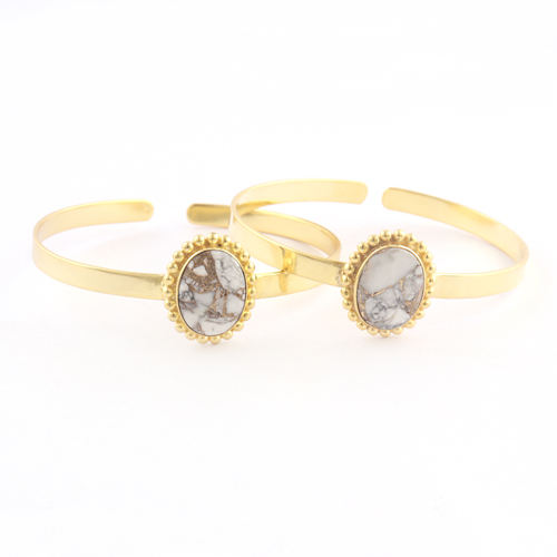 Luxury 24K Gold Plated Copper Howlite Turquoise Bangle Open Cuff Bracelet with Adjustable Oval Shape Handmade Fashion Gift