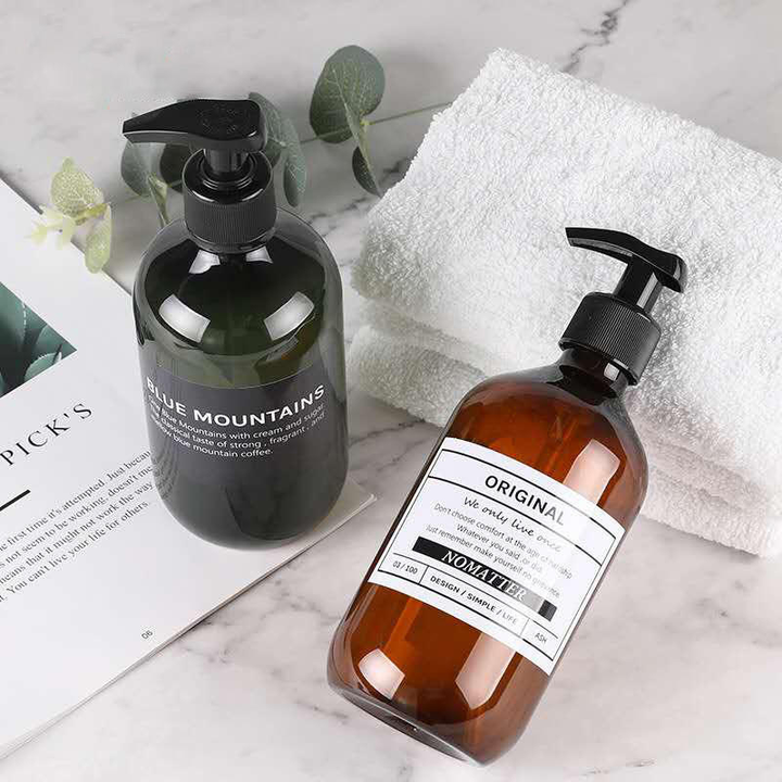 Luxury 300ml 500ml PET Round Shampoo Bottle Shower Gel Body Lotion Bottle with Customized Label for Cosmetic Packaging