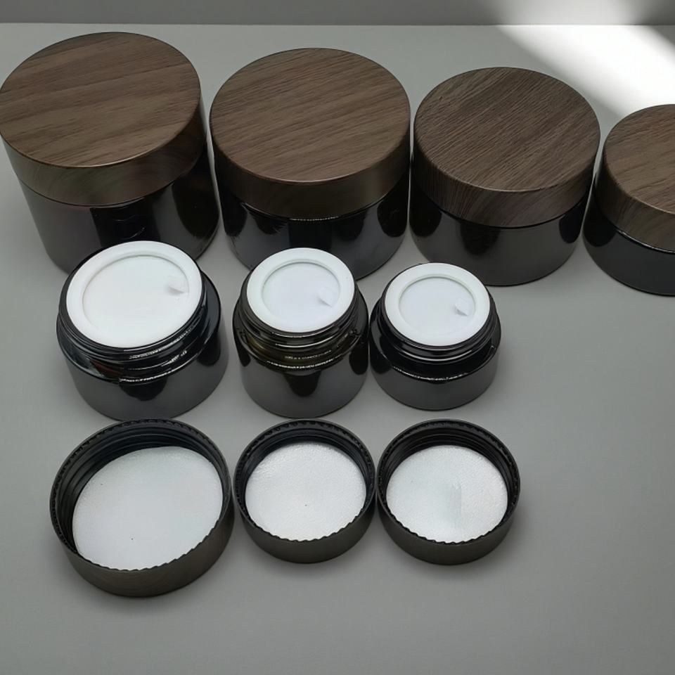 Luxury 30g 50g 60g 2oz Empty Amber Plastic Bamboo Wood Grain Cream Jar Black Lid Amber Glass Cosmetic Jar with Body Butter Cream