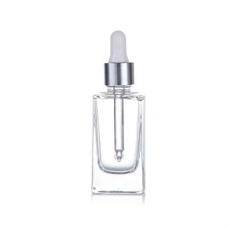 Luxury 30ml Thick Bottom Square Glass Dropper Bottle 20ml Empty Clear Essential Oil Glass Bottle Skin Care Serum Cosmetic Bottle