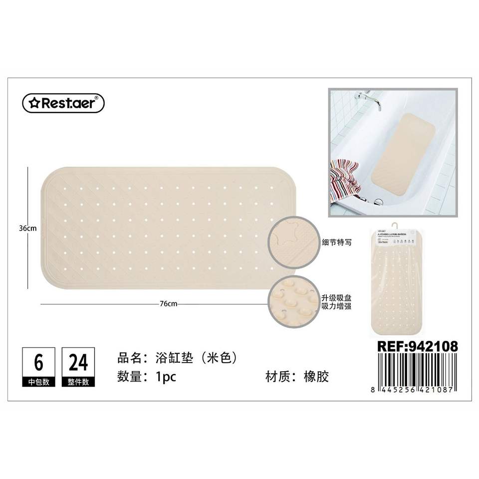 Restaer Bath Mat 36x76cm Rubber Non-Slip For Bathroom