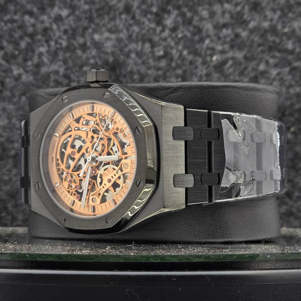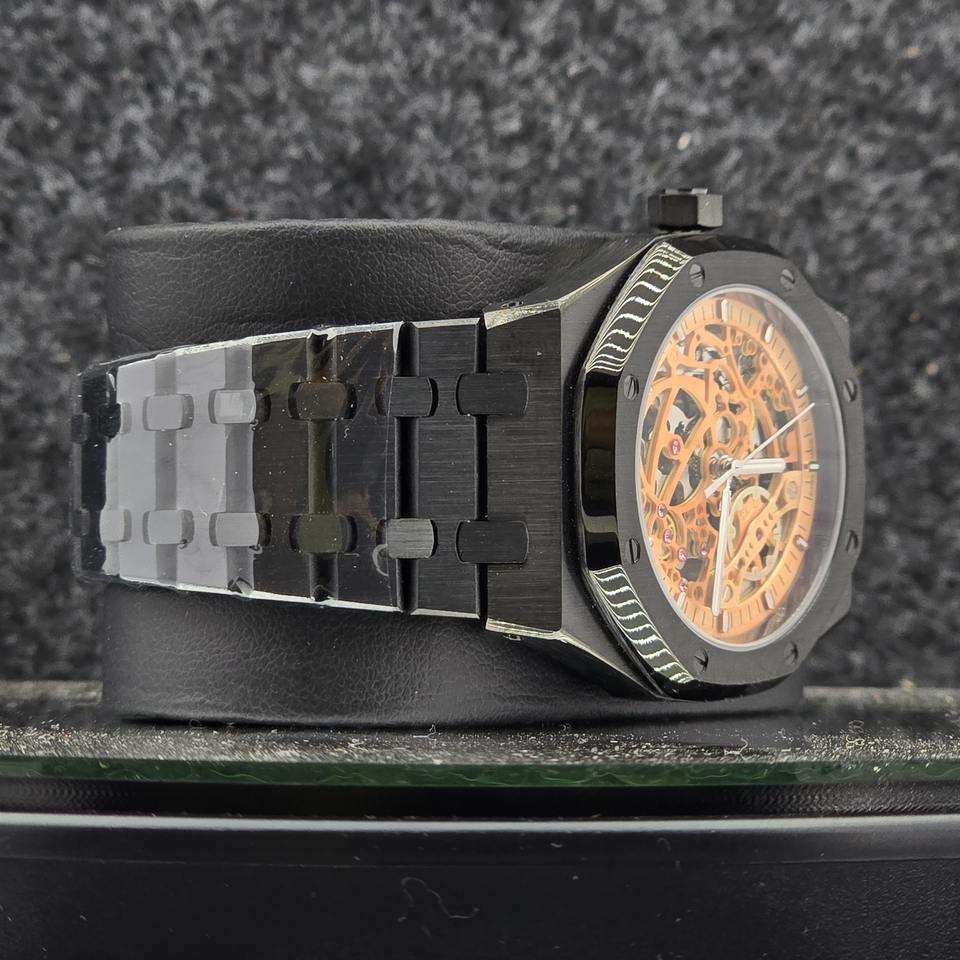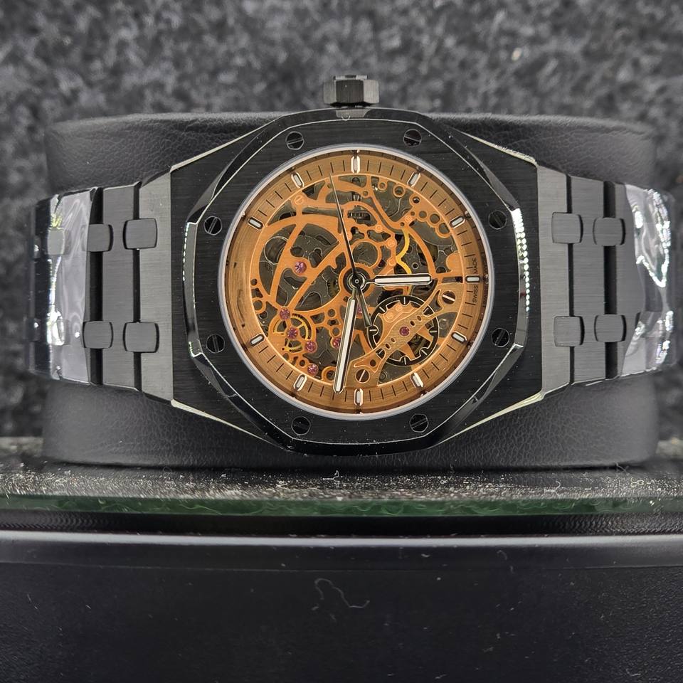 Luxury 41mm Men's Watch Black Ceramic Style Automatic Mechanical Movement Analog SkeletonGold 16mm Integrated Stainless Steel
