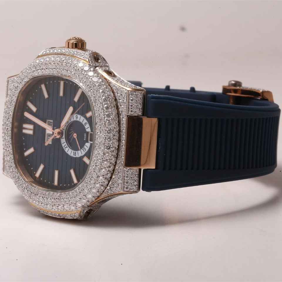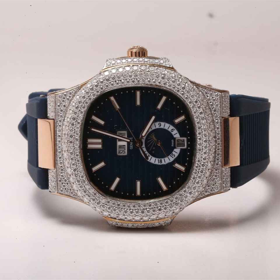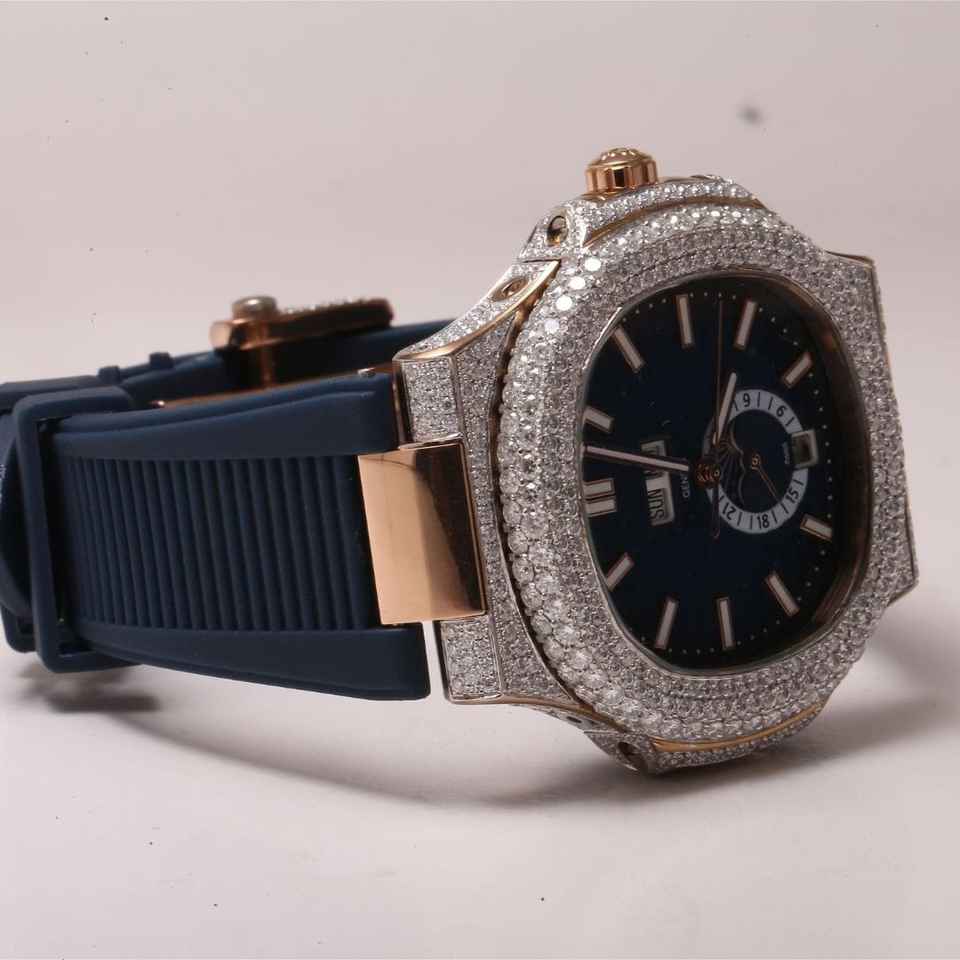 Luxury 41mm Sport Collection Analog Dial Watch 21mm Band Width Iced Diamond Antique Business Style Glass Mechanical Watches