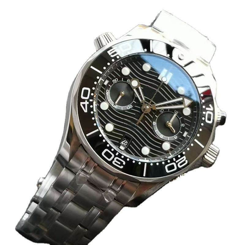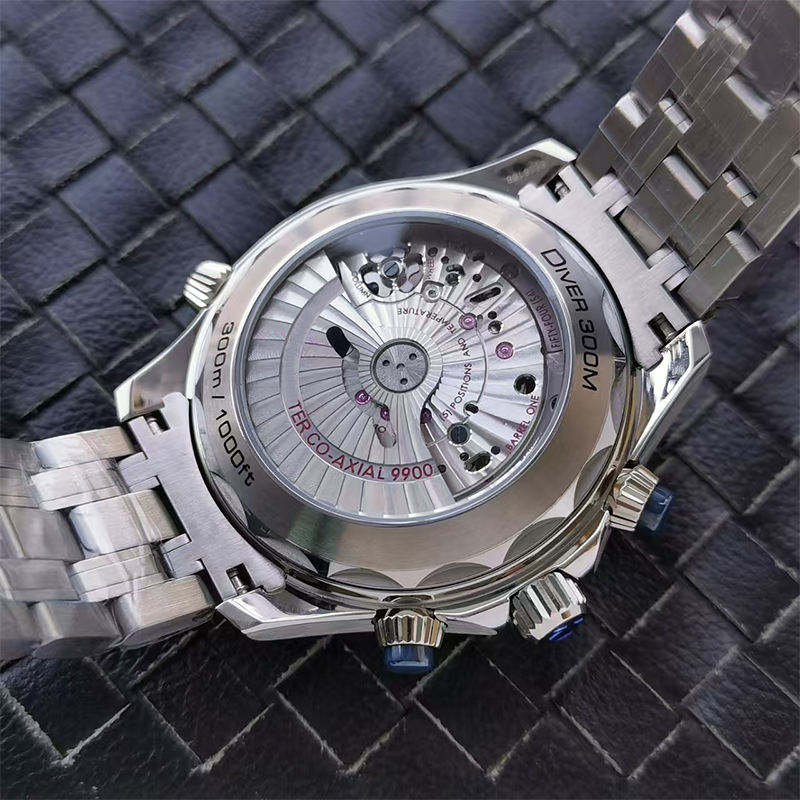 Luxury 44mm Mechanical Diver Watch 9900 Factory Movement Waterproof Black Ceramic Bezel Chrono 100m Power Reserve Black Watch