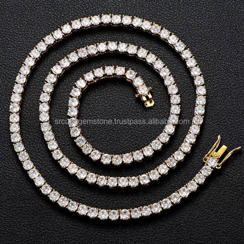 Luxury 4mm VVS Moissanite Tennis Necklace Iced Hiphop Style 925 Sterling Silver Gold Plating Dazzling Gifts Engagement