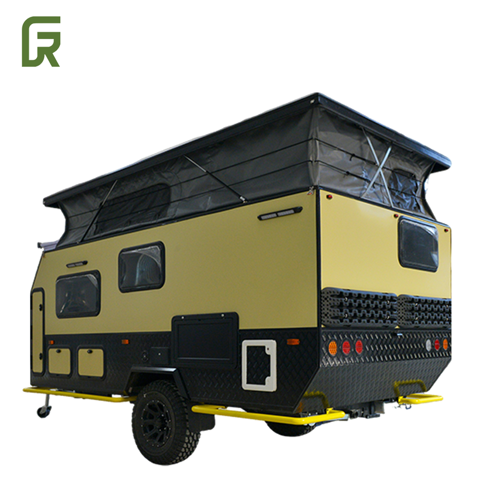 Luxury 4x4 Hybrid RV Caravan Dual Axle Mini Fiberglass Trailer with Independent Solar Panel Waterproof for Off-Road Conditions